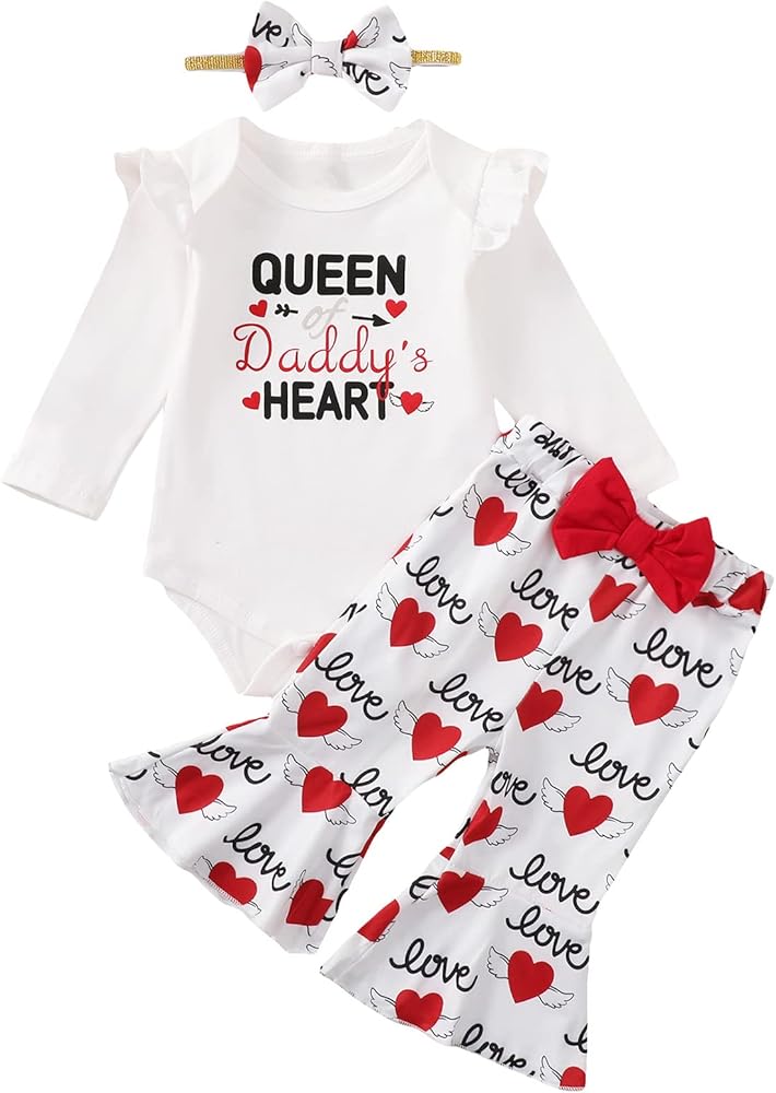 - ملابس عيد الحب للفتيات الصغيرات من عمر 12 إلى 18 شهرًا تحتوي على بدلة واحدة وجزء سفلي جرس وعصابة رأس