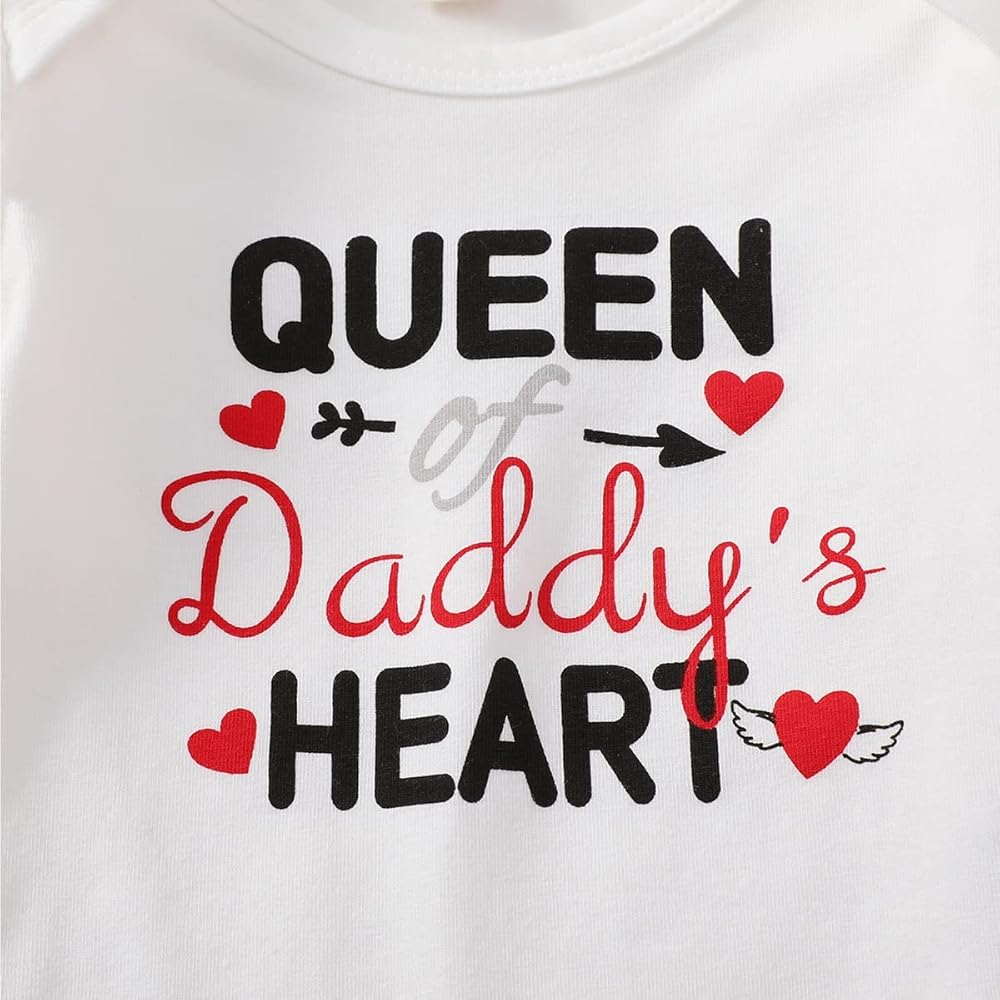 - ملابس عيد الحب للفتيات الصغيرات، طباعة قلب ملكة الأب، سوف تحب أميرتك الصغيرة ملابس عيد الحب هذه
