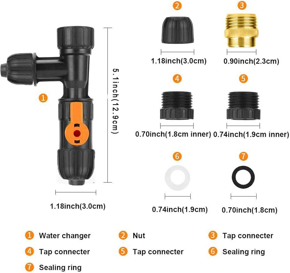 مجموعة واسعة من الاستخدامات. عندما يتم توصيل مغير المياه هذا بخرطوم وصنبور، قم بتشغيل المفتاح دون تشغيل الجهاز لتجفيف الماء من الخزان. قم بإيقاف تشغيل المفتاح الموجود على الجهاز لتدفق الماء إلى الخزان.