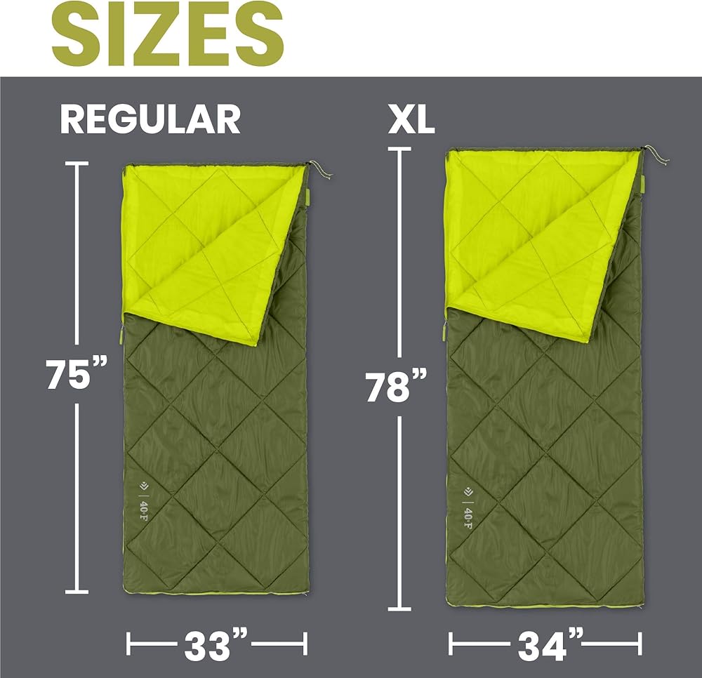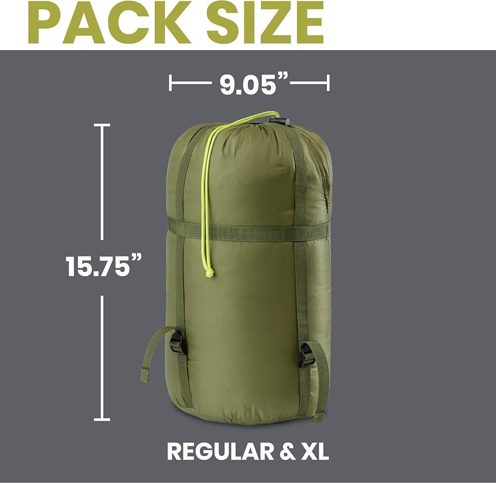 استمتع بالراحة مع حقيبة النوم العادية 40 فهرنهايت. هذه الحقيبة مصنوعة من قماش متين ومقاوم للماء مما يجعلها سهلة التنظيف. بطانة داخلية ناعمة وجيدة التهوية تبقيك مسترخياً طوال الليل. قم بتعبئة المخيم بسهولة مع حقيبة حمل مضغوطة ذات 4 أحزمة للسفر والنقل المريح.
