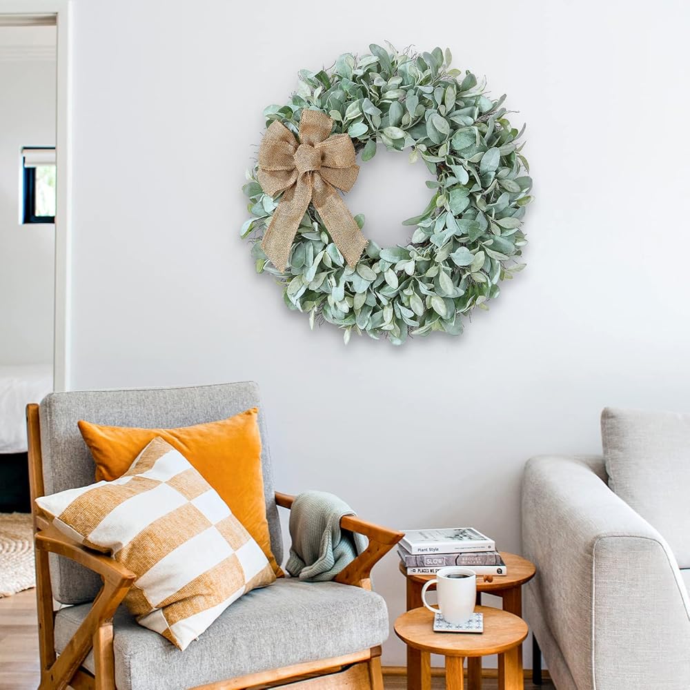 إكليل KuiMen، أكاليل الباب الأمامي، إكليل أذن الحملان مقاس 24 بوصة، ديكورات الممر في الفصول الأربعة، الباب الأمامي، الباب الخلفي، غرفة المعيشة والجدار (أخضر)