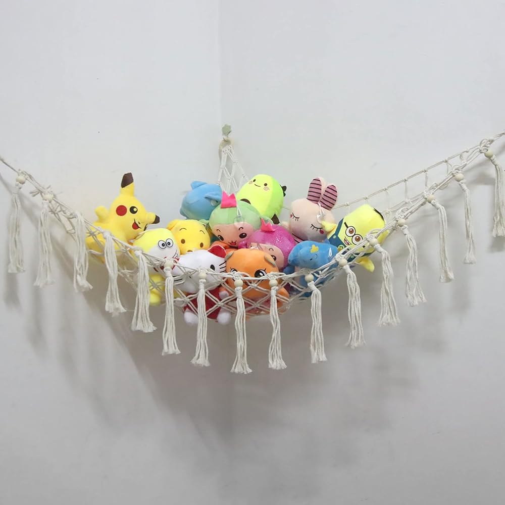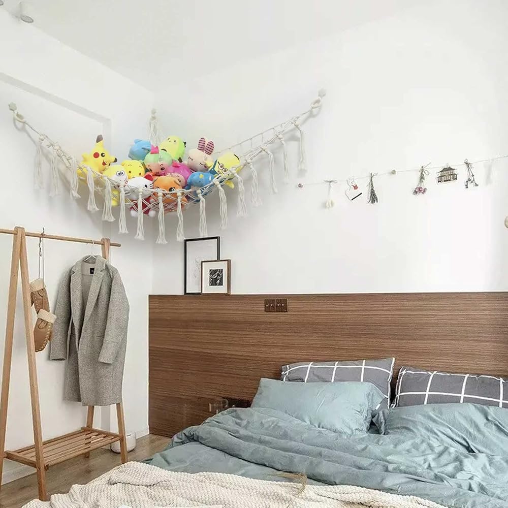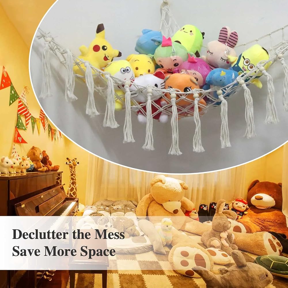【Larger size, More storage】The size of the large stuffed animals hammock is 57*41*41 inches, Take advantage of the triangular corners on the wall to accommodate a large number of kid's stuffed animals without taking up extra floor space.