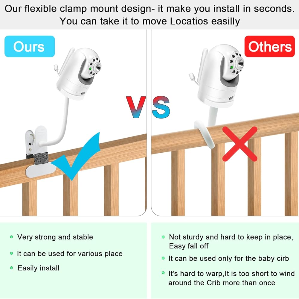 2 حزمة من حامل مراقبة الطفل المرن المشبك متوافق مع بصريات الرضع DXR-8 وDXR-8 Pro Video Baby Monitor حامل شاشات الأطفال لسرير الأطفال وحامل كاميرا الطفل بدون أدوات أو تلف الجدار
