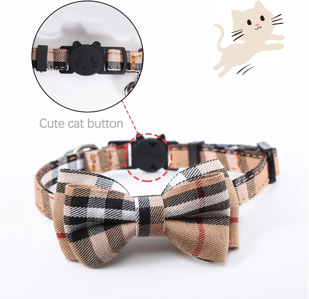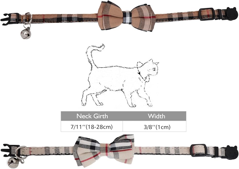 مجموعة اطواق القطط من قطعتين، طوق للحيوانات الاليفة قابل للفصل مع ربطة عنق وجرس لطيف قابل للفصل، ناعم ومريح للقطط الصغيرة وبعض الجراء، قابل للتعديل من 7.87-11 انش