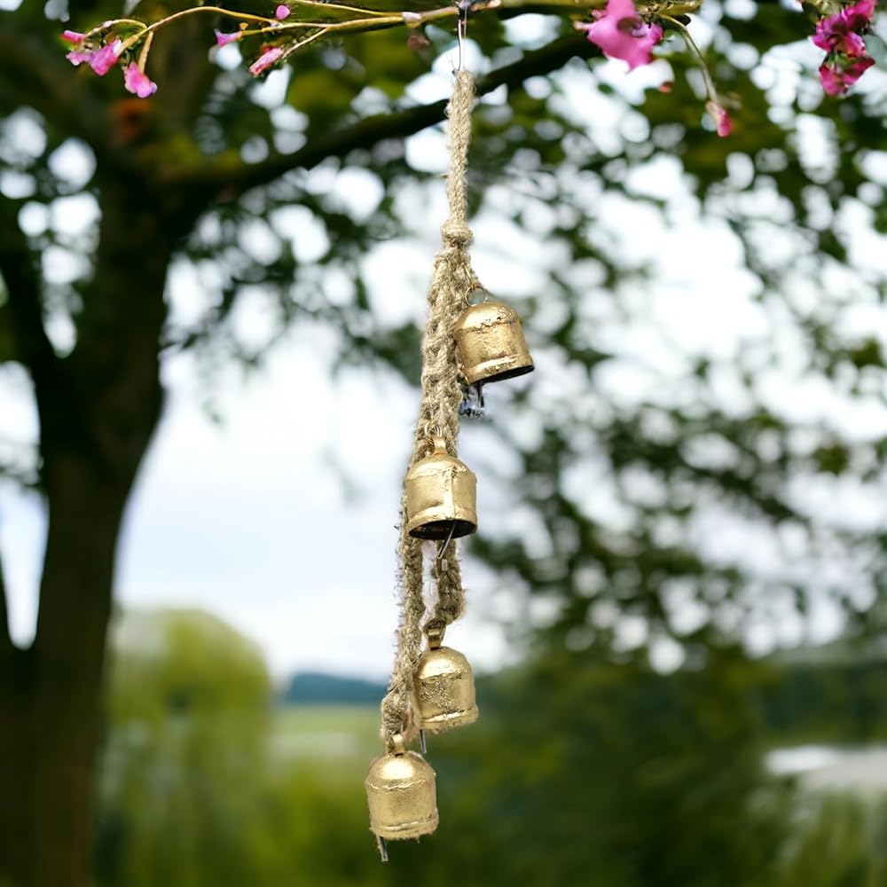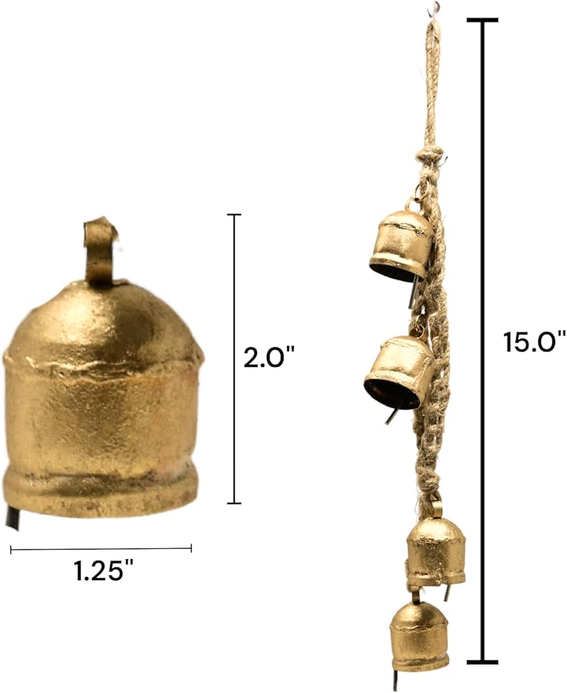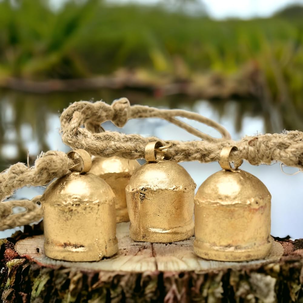 جودة ممتازة مصنوعة يدويًا بالكامل: مجموعة من 4 في حبل واحد، أجراس البقر الخاصة بنا مصنوعة من معدن عالي الجودة ومصنوعة يدويًا بعناية. مصممة لتوفير منتج متين يدوم طويلاً ويمكن استخدامه لسنوات قادمة.