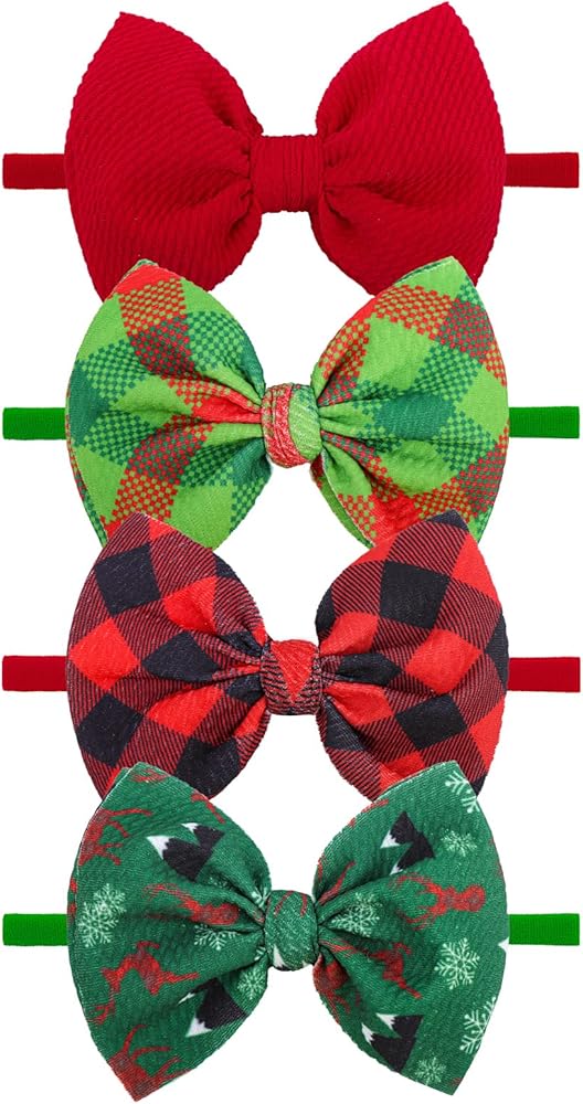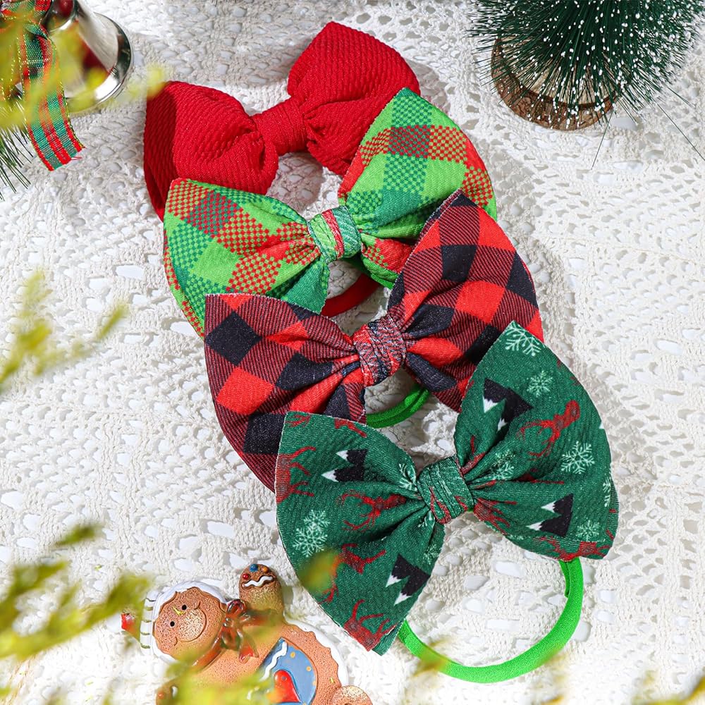 Contains 4 Christmas Baby Headbands: A set of 3 different bow headbands for toddlers. All baby hair accessories are handmade with love. Every cute baby bow and children's headband is perfect for Christmas and daily.