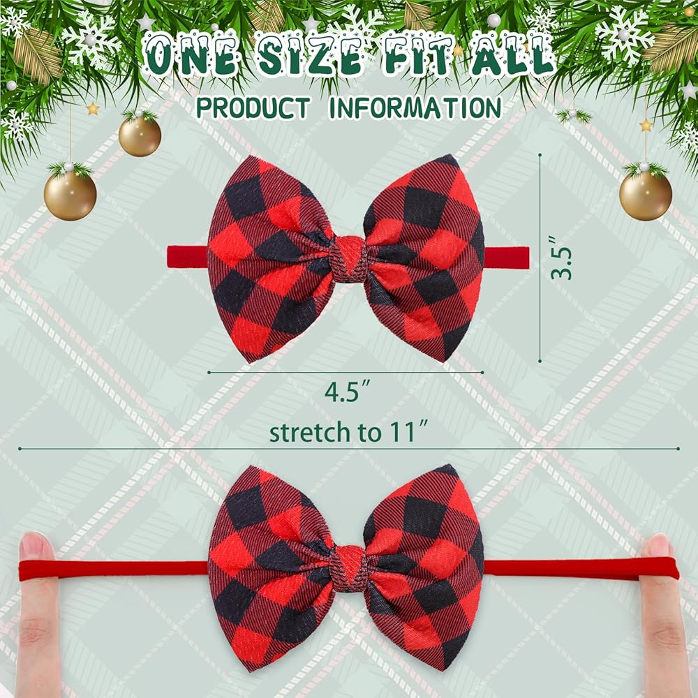 High-Quality Material: The Christmas headband bow is made of a soft nylon band, It is lightweight, high quality, and not easy to fade or break. Nylon headband, soft and elastic, suitable for different head circumferences, friendly to baby skin.