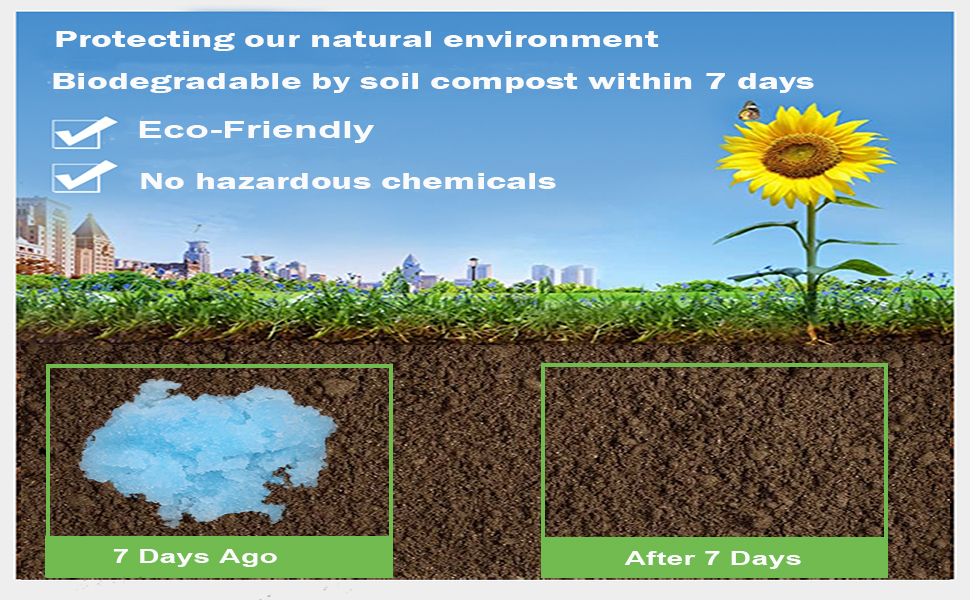 مسحوق براز المرحاض المحمول القابل للتحلل البيولوجي - جل ماص صديق للبيئة آمن وغير سام للتحكم في النفايات السائلة والرائحة. جل صديق للبيئة للمرحاض المحمول، يمكنك حبس الرائحة الكريهة في الكيس ببضع خطوات بسيطة، مع انبعاث رائحة الليمون الخفيفة. يمكن أن يتحلل الجل السائل السائل المعالج بشكل طبيعي عن طريق تسميد التربة خلال 7 أيام وبأشعة الشمس خلال 5 أيام. إنه خيار مثالي للمسافرين المهتمين بالبيئة