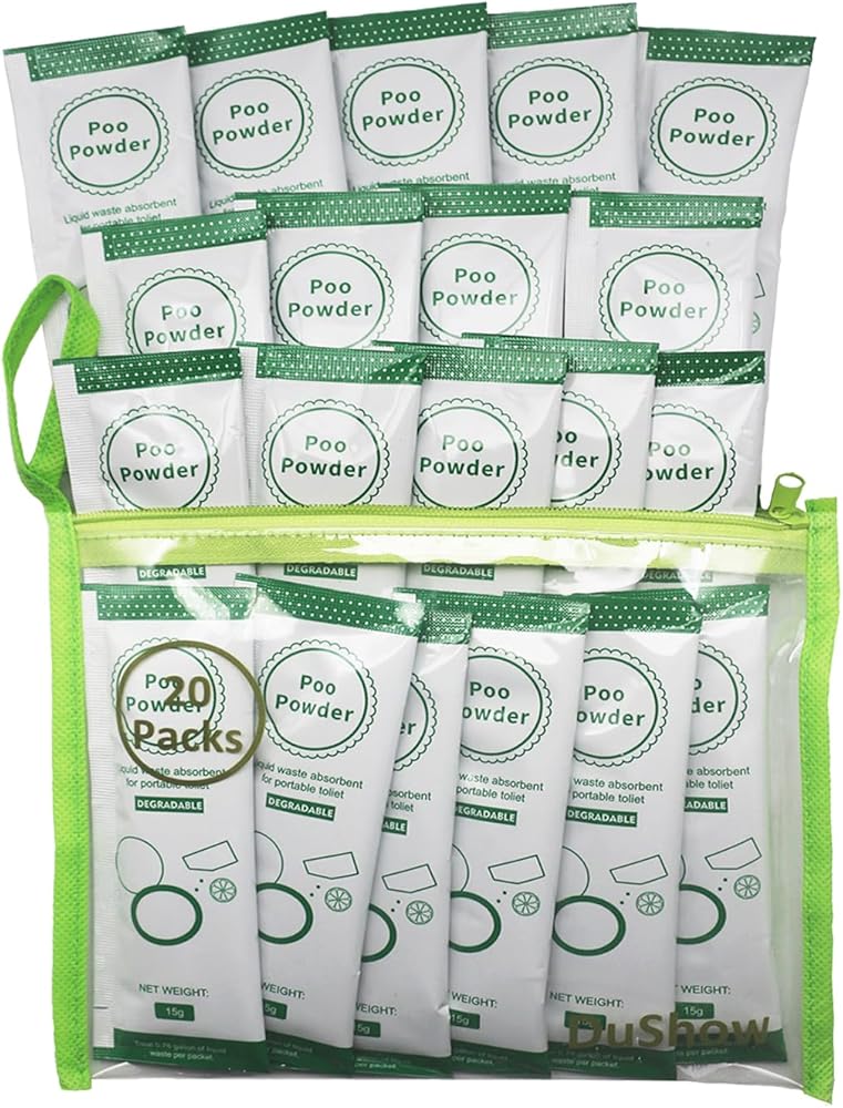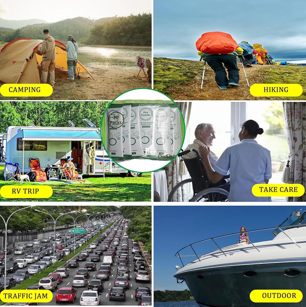 20 عبوة من مسحوق براز المرحاض المحمول للمرحاض في الهواء الطلق، جل صديق للبيئة لمرحاض التخييم المحمول، مواد كيميائية للمراحيض في حالات الطوارئ، ماصة لإزالة الروائح الكريهة ومعالجة نفايات المرحاض في حالات الطوارئ