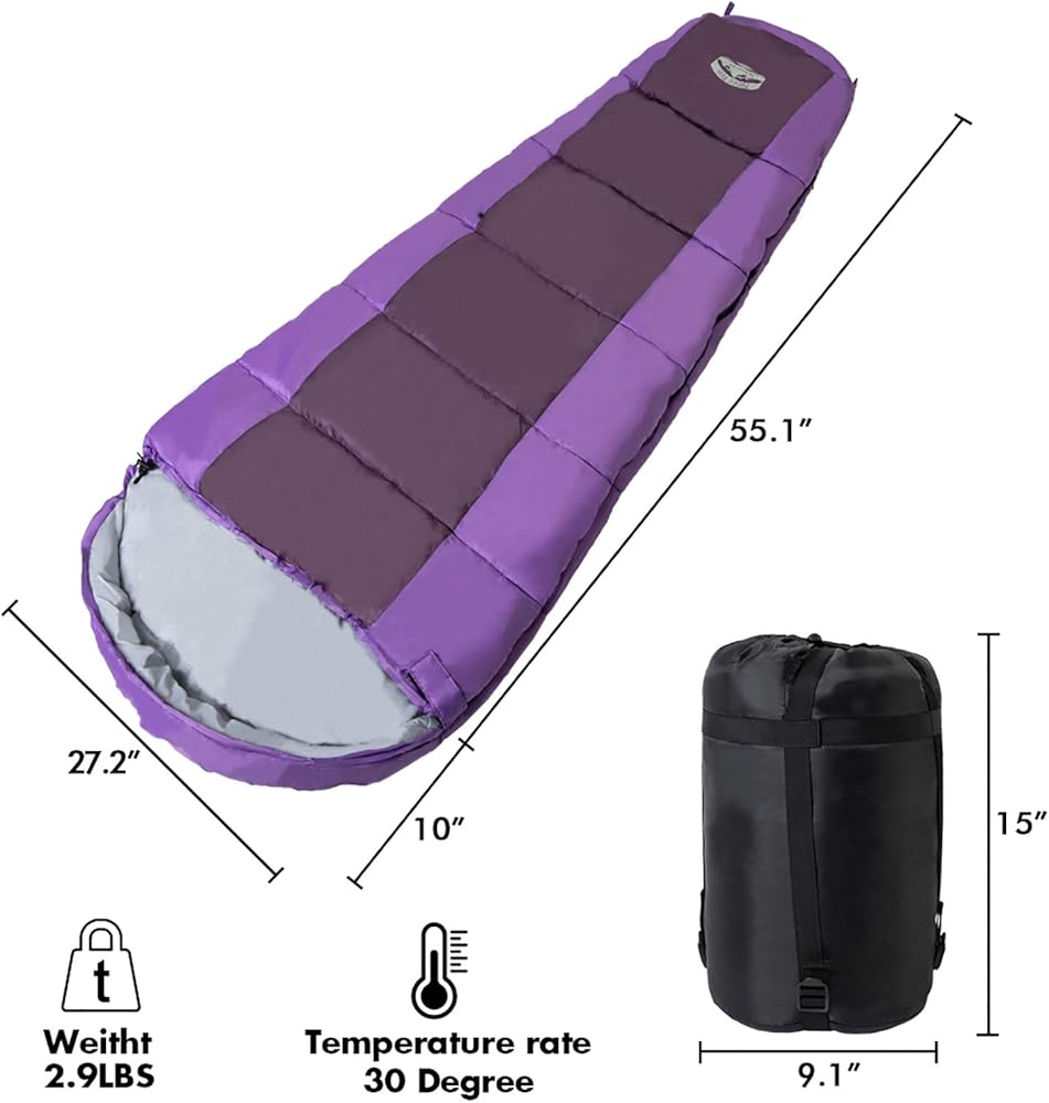 Easy Carry: The ultralight sleeping bag comes with a travel-friendly compression sack, a compact sleeping bag stored in a stuff sack will take up less space when you stow it in your vehicle. The lightweight sleeping bag is easy to be hand wash