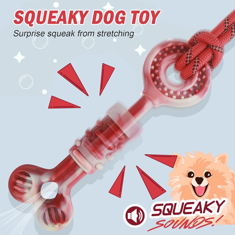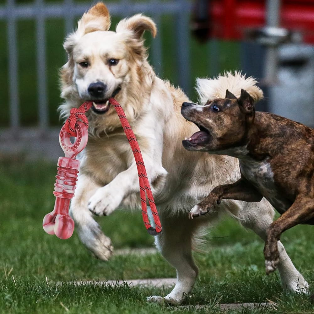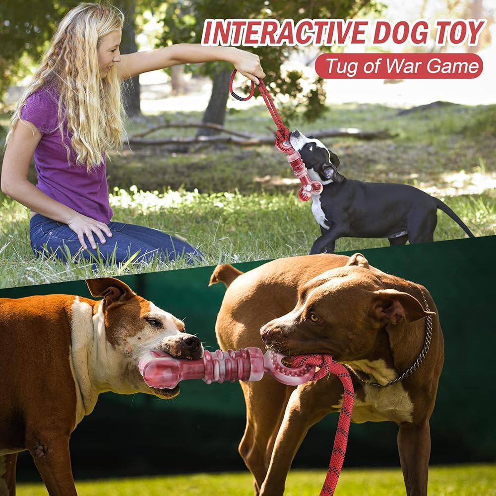 • TUG OF WAR TOY – This dog bone toy comes with a 20-inch rope, perfect for playing tug-of-war.The toy squeaks when stretched, and this hidden surprise that provides mental stimulation for dogs.