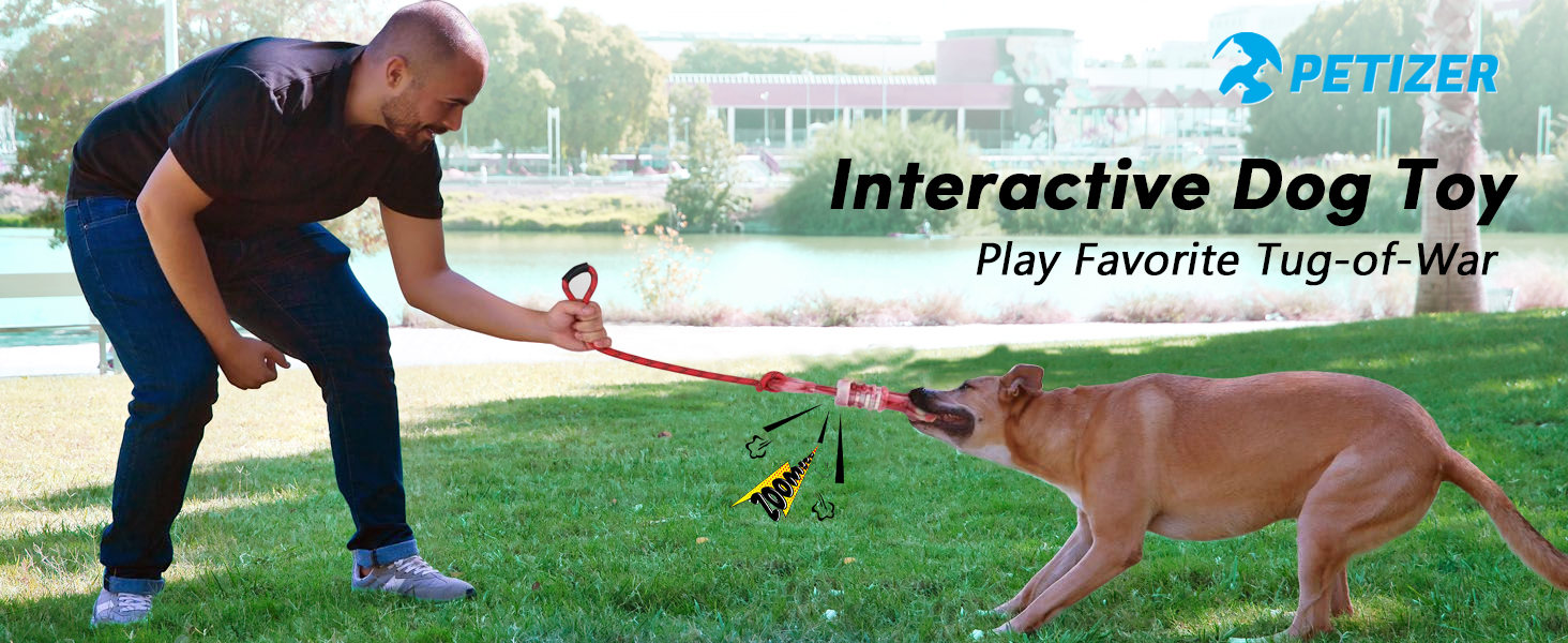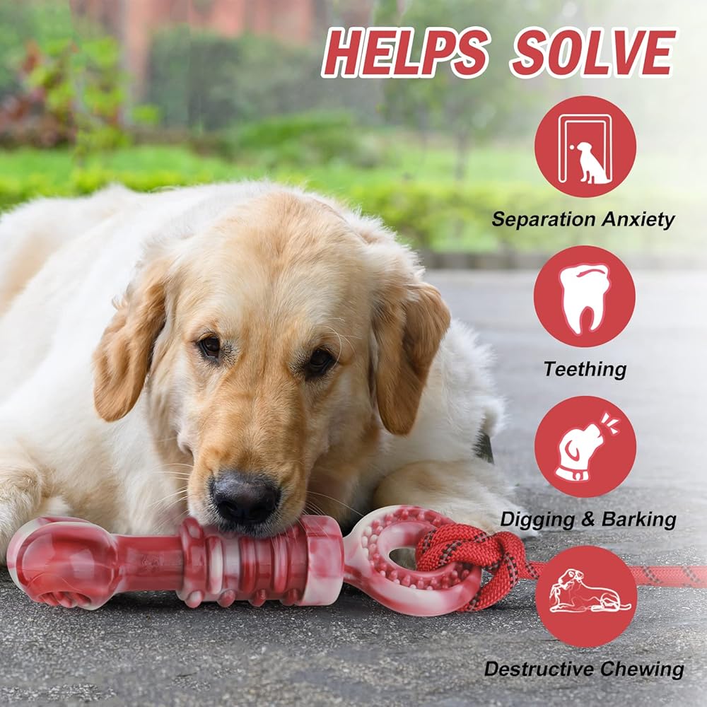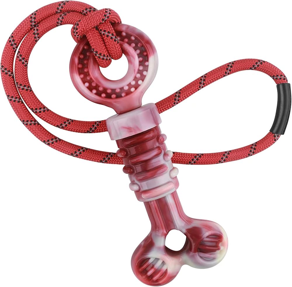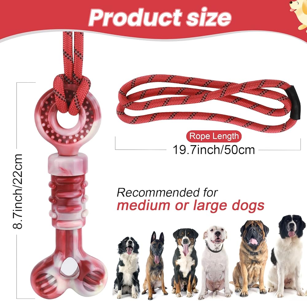 • TUG OF WAR TOY – This dog bone toy comes with a 20-inch rope, perfect for playing tug-of-war.The toy squeaks when stretched, and this hidden surprise that provides mental stimulation for dogs.