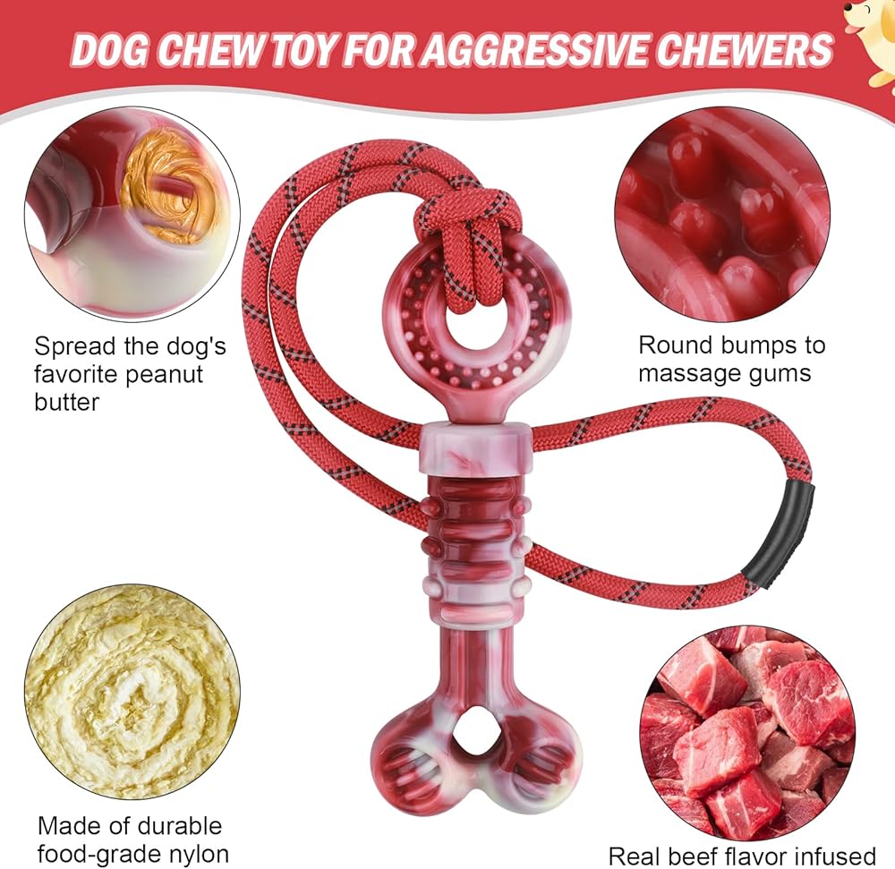 Dogs love to chew, petizer chew toy with real beef flavor will be more enticing for your dogs. The nylon material stands up to heavy chewing, recommended for aggressive chewers. Helps solve destructive chewing, digging and barking, teething, stress and anxiety, separation anxiety, and boredom. Dog toys offer mental and physical stimulation and enrichment. But nothing can replace the value of engaging in interactive play with your dog. Use this toy to enjoy a tug a war game with your dog. We're in the business of making dogs happy, and there's nothing more important to us than the safety of your dog. Since the bone is hard, it's important that your dog has strong teeth. keep an eye out for wear and tear and replace when it get gnarly.