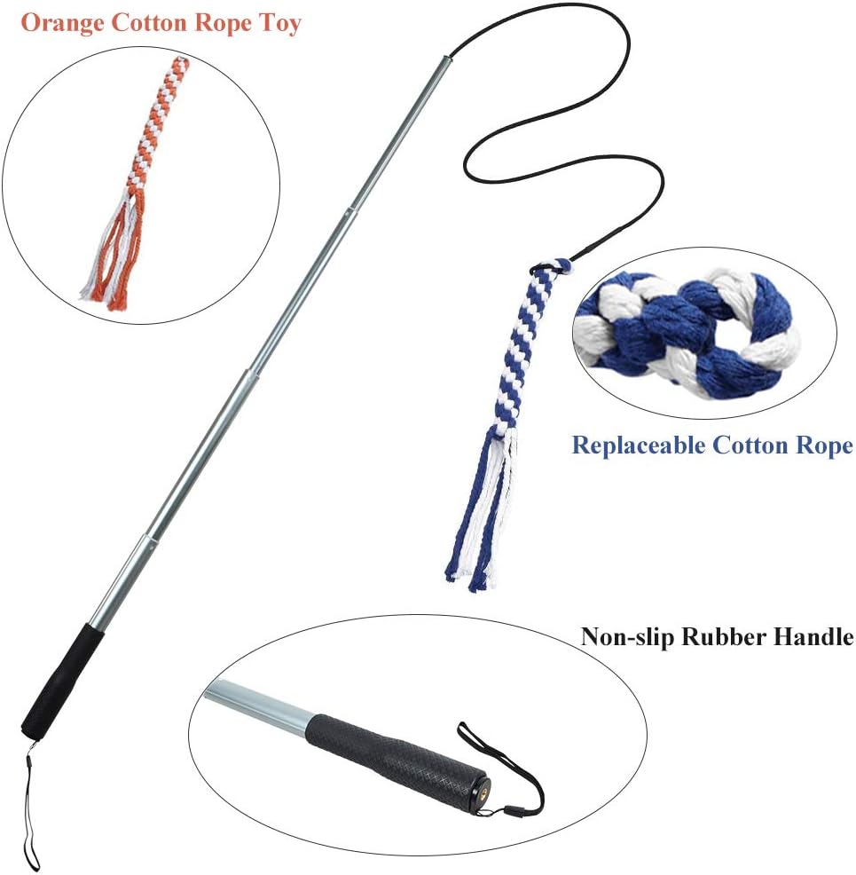 ايجوجو لعبة القطب اللعوب للكلاب والحيوانات الاليفة قابلة للتمديد، عصا مغازلة مع حبلين قطنيين، لعبة تفاعلية للكلاب الصغيرة والمتوسطة والكبيرة للتدريب في الهواء الطلق واللعب والسحب