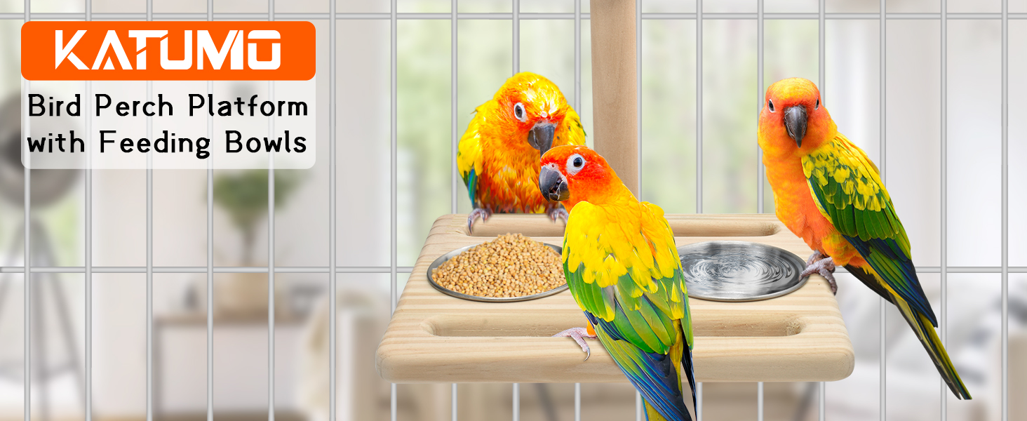 جثم الببغاء: تم تصميم منصة خشب الببغاء من كاتومو مع حاملات أوعية وجانبين من المجثم بشكل متكامل، مصنوعة من الخشب السميك القوي، قدرة تحمل كبيرة لحمل الطعام والماء.