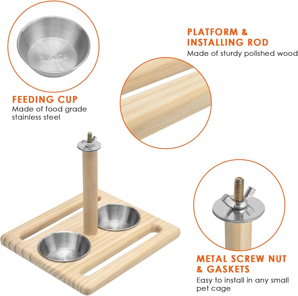 المجثم وأكواب التغذية: يتم الجمع بين المجثم الخشبي وأوعية الطعام لطيور كاتومو في آن واحد، وهي مناسبة للببغاء والكوكاتيل والكونيور وطيور الحب والببغاء وغيرها من الحيوانات الأليفة الصغيرة. من المؤكد أن طيورك ستحب مسح مناقيرها على المجاثم والراحة على المنصة بعد تناول الطعام