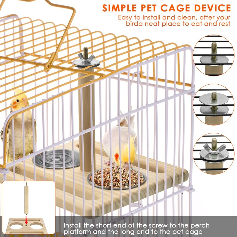 سهلة الاستخدام: مع الحشيات المعدنية والجوز، يمكن تركيب منصة المجثم في الجزء العلوي من جميع أقفاص الحيوانات الأليفة. قوي ومستقر للطيور الصغيرة للوقوف أو القفز على الحواف الوسطى أو الجانبية أثناء الاستمتاع بطبق الطعام (ملاحظة: قم بتثبيت الطرف اللولبي القصير للقضيب على المنصة، والطرف الطويل للقفص)
