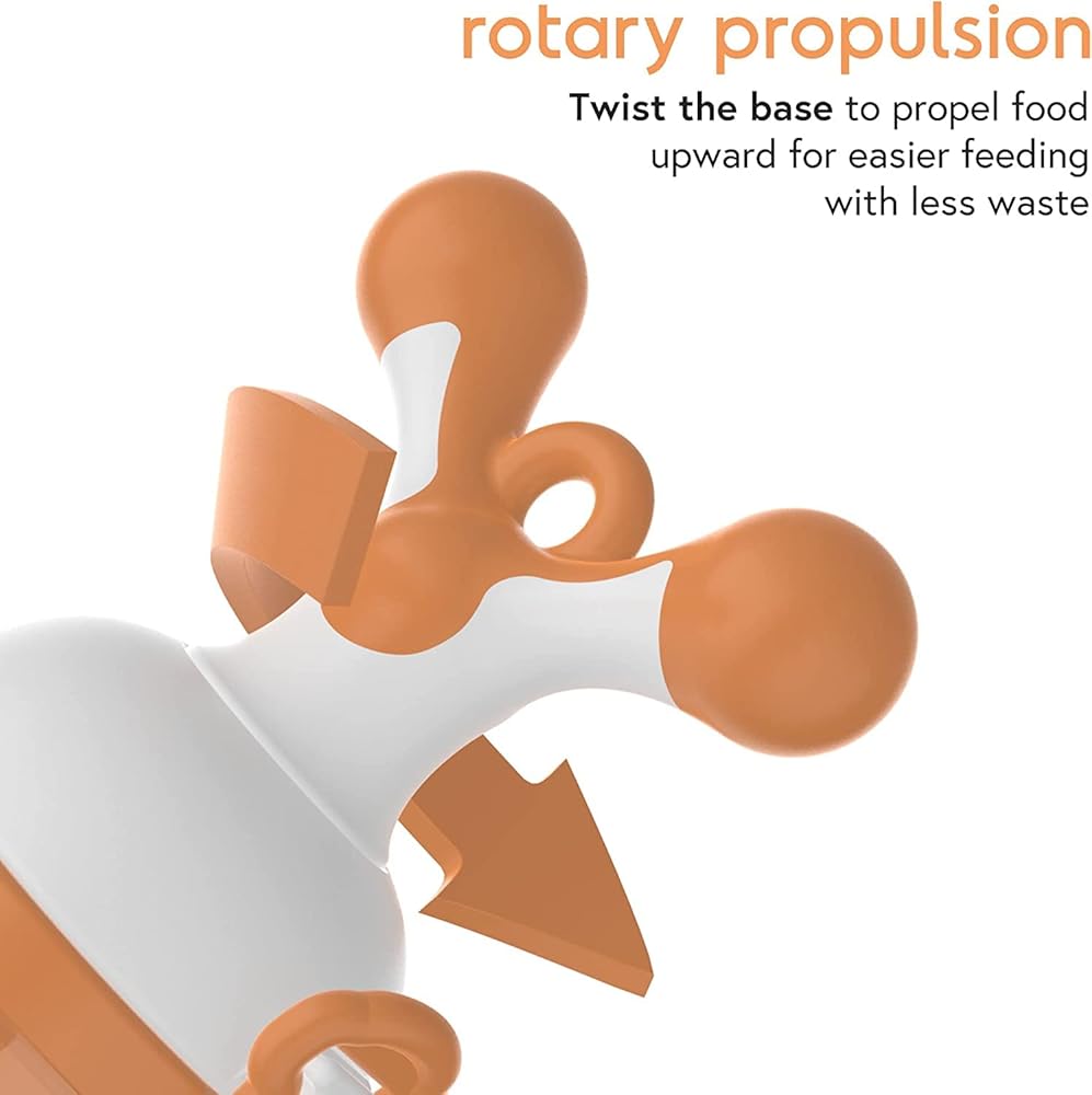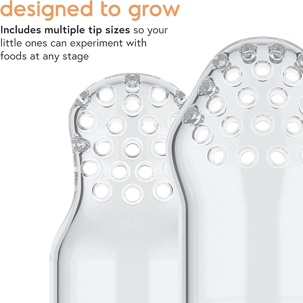 مصاصة تغذية الفواكه للأطفال: قم بلفها واسحقها وتذوقها - إن وحدة تغذية طعام الأطفال المصنوعة من السيليكون من فرووتي تجعل وقت تناول الطعام ممتعًا للطفل، مما يسمح لطفلك باستكشاف الأذواق والأنسجة الجديدة. ما عليك سوى وضع فروتي على سطح مستوٍ وتحميلها بالفواكه أو الخضار الطازجة أو المجمدة، أو حتى حليب الثدي المجمد.