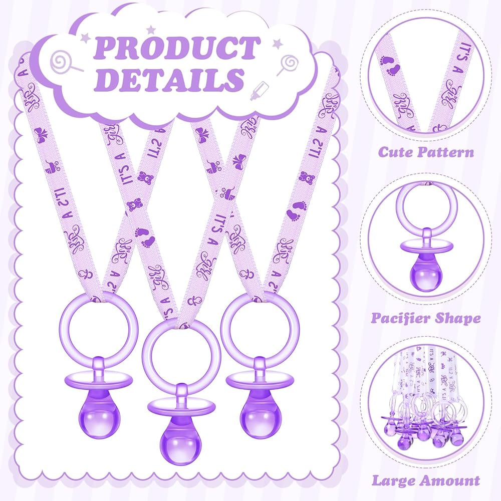 This purple pacifier for baby shower is made of quality material, which is reliable to use, sturdy and firm, easy to fade and break, can be applied for a long time.