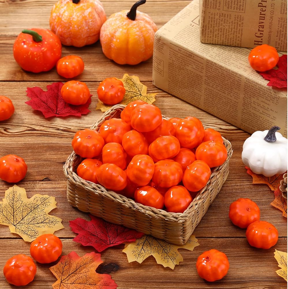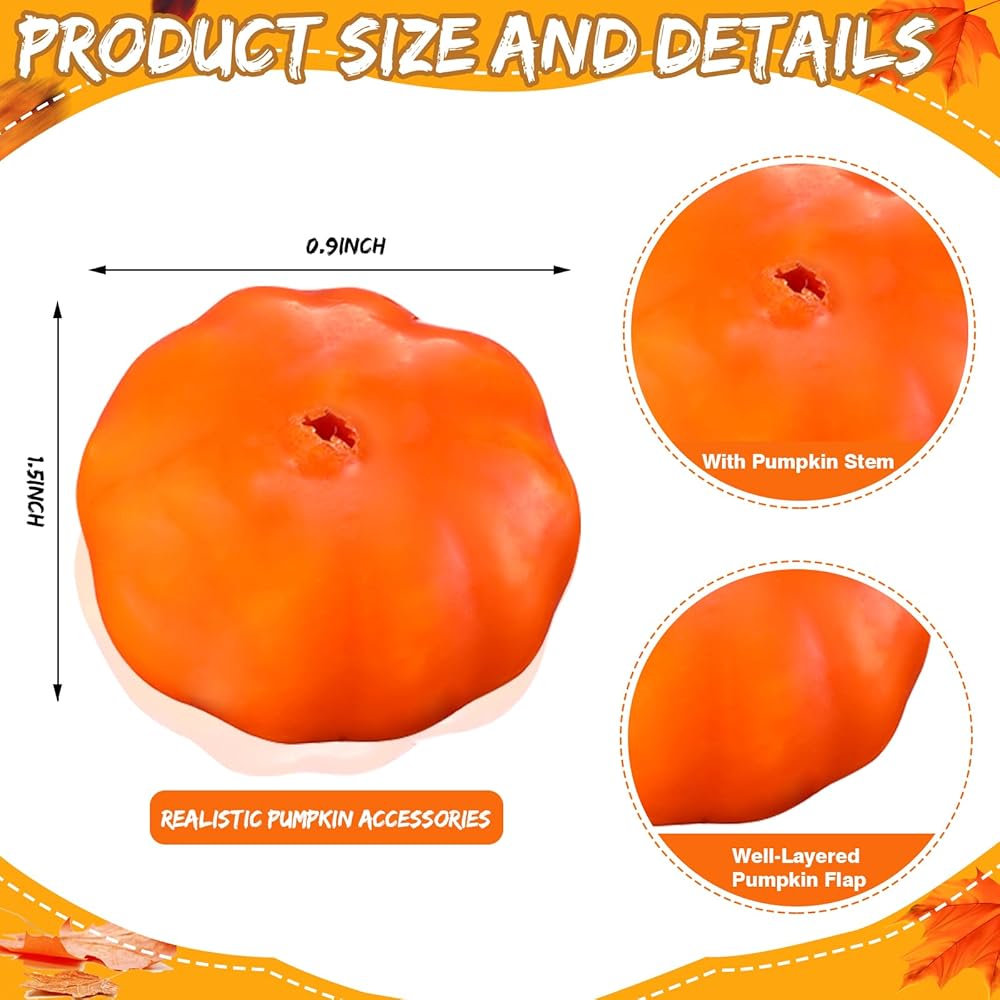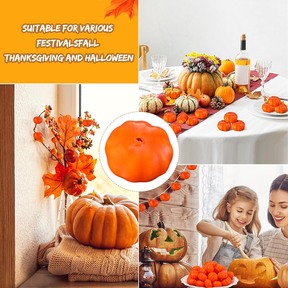 These mini orange pumpkins are suitable for DIY projects, such as decorating wreaths, centerpieces, garlands, and more. You can even paint or decorate them according to your creativity and add them to your Halloween or Thanksgiving decorations.