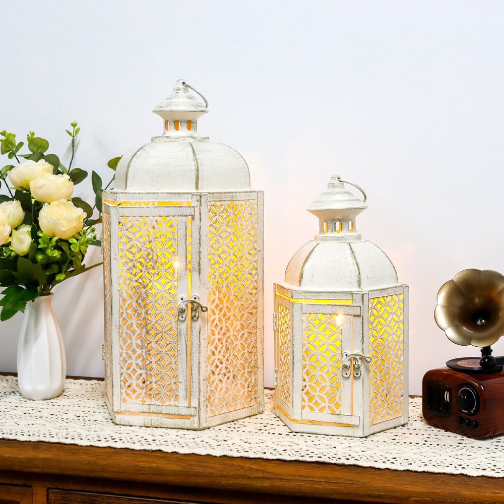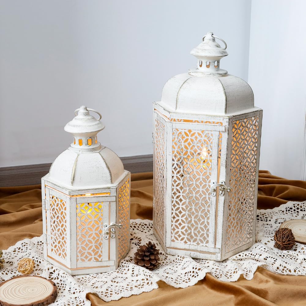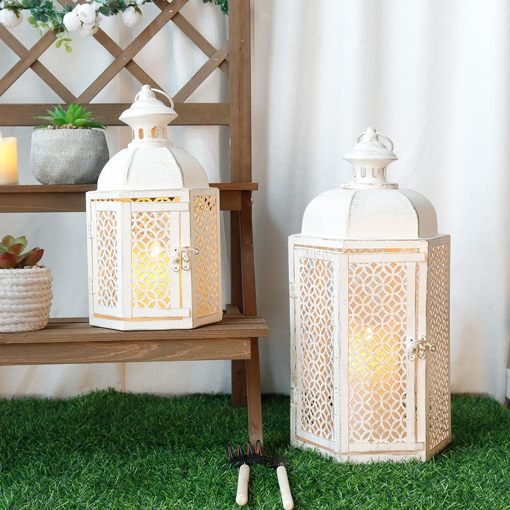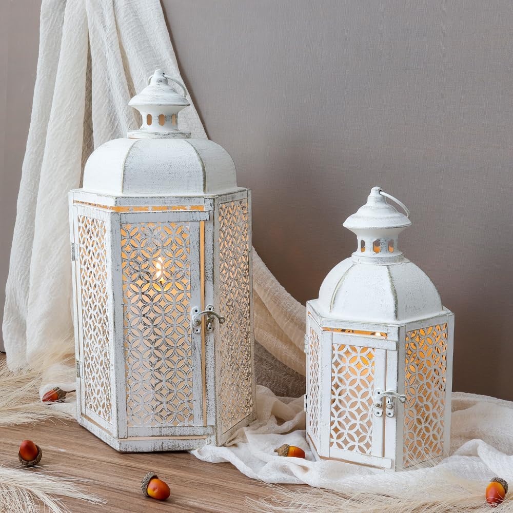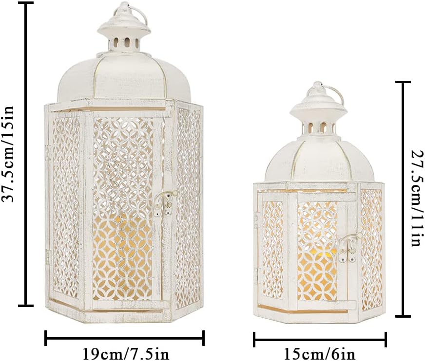 【حجم عالمي لمعظم المناسبات】- 7.5 بوصة طول × 6.5 بوصة عرض × 13.5 بوصة ارتفاع، 15.5 بوصة طول مع حلقة. يستخدم ضوء الشاي، والشموع الحقيقية، والشموع النذرية أو الصغيرة حتى 3 بوصة × 4 بوصة و4 أقدام "× 6" ديكور ريفي للداخل والخارج - مثالي لغرفة المعيشة وغرفة النوم والحمام وغرفة الطعام وديكور غطاء الموقد وديكور الطاولة والفناء والممر والممر والرف والفناء والشرفة وما إلى ذلك.