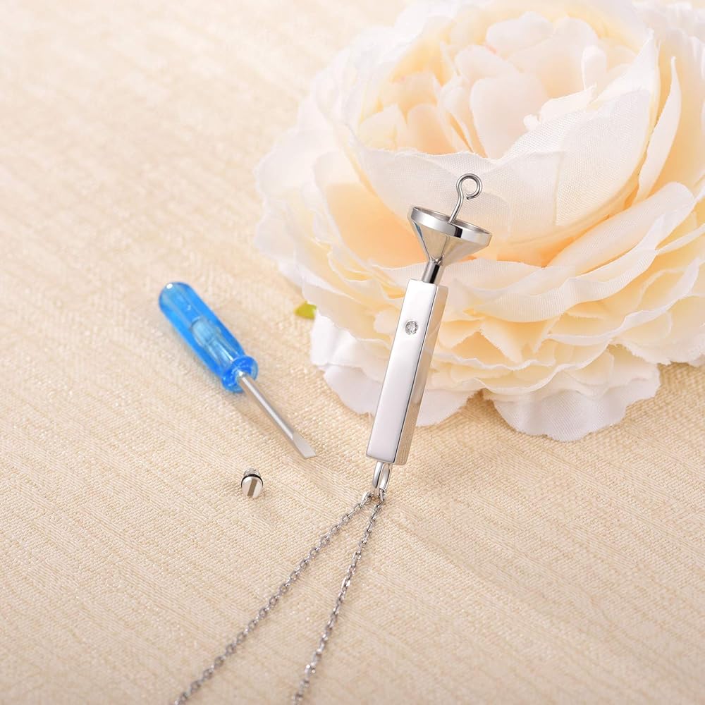 المواد: فضة استرلينية 925، لن يتغير اللون، لا يسبب الحساسية، عقد بسيط وموجز، تصميم المسمار، يحتاج إلى استخدام مفك مستقيم أو أداة مسطحة لفتح القلادة