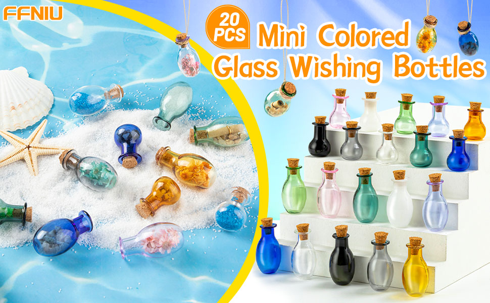 FFNIU Tiny Spell Jars, 20 Pcs Mini Glass Color Bottles, Cute Wishing Bottles Small Glass Potion Bottles With Corks for Wedding Birthday Party DIY Crafts Supplies