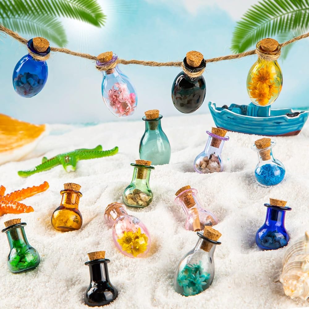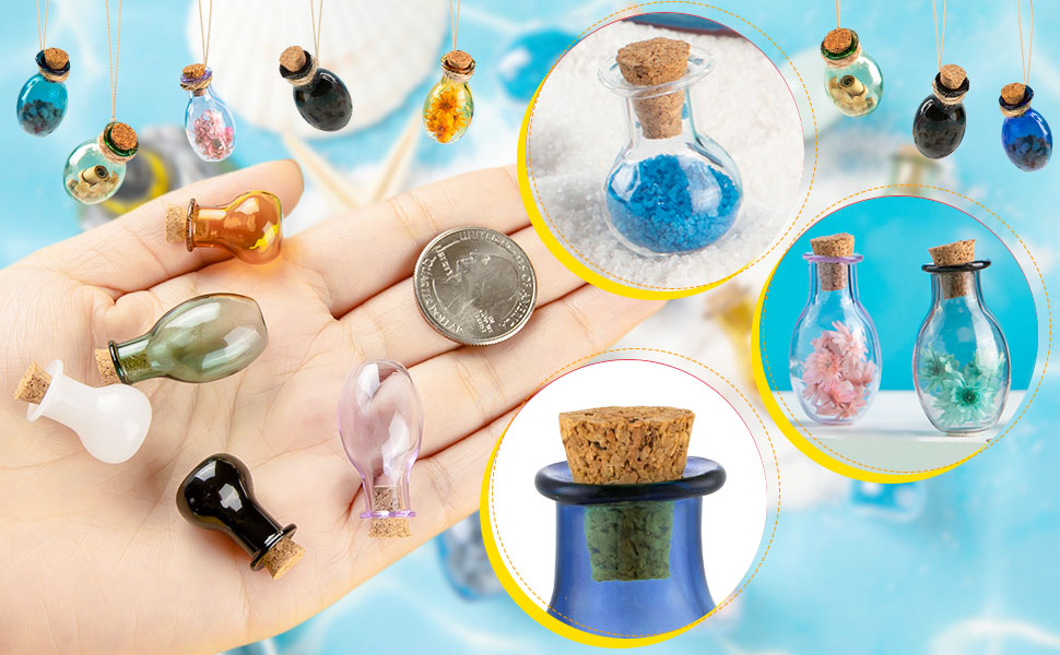 【MULTIPLE USES】 The wishing bottle tiny jars can be used for a variety of purposes. It's perfect for holding small trinkets, such as beads, tiny shells, or dried flowers. You can also use it as tiny terrarium for a miniature plant, or as You can add your own personal touch by painting the bottle, or tying a ribbon around the neck of the bottle.