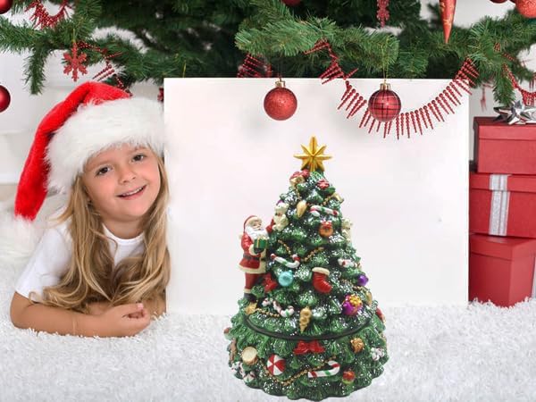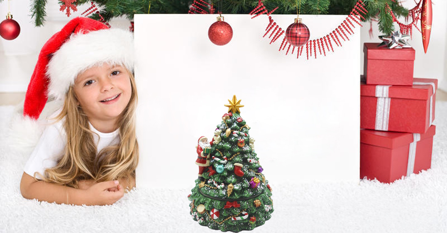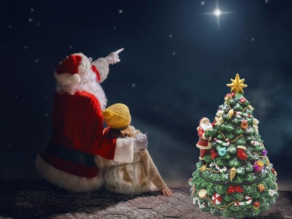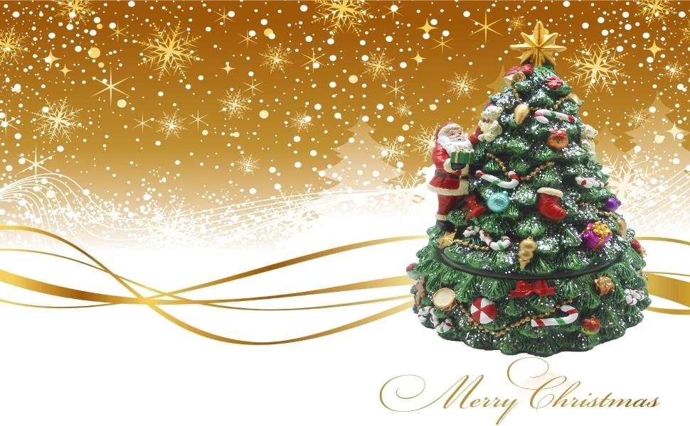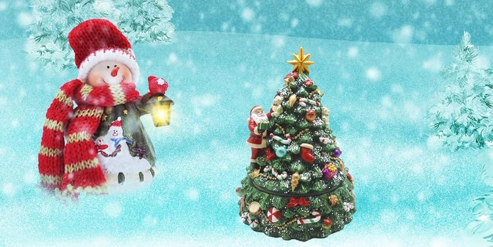 صندوق موسيقي دوار لشجرة عيد الميلاد مع الشجرة الدوارة وموسيقى تعزف اللحن "We wish you a Merry Christmas"