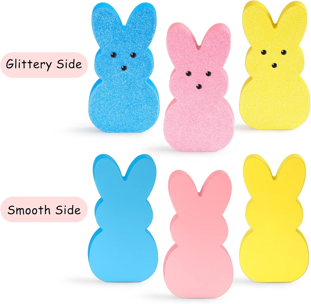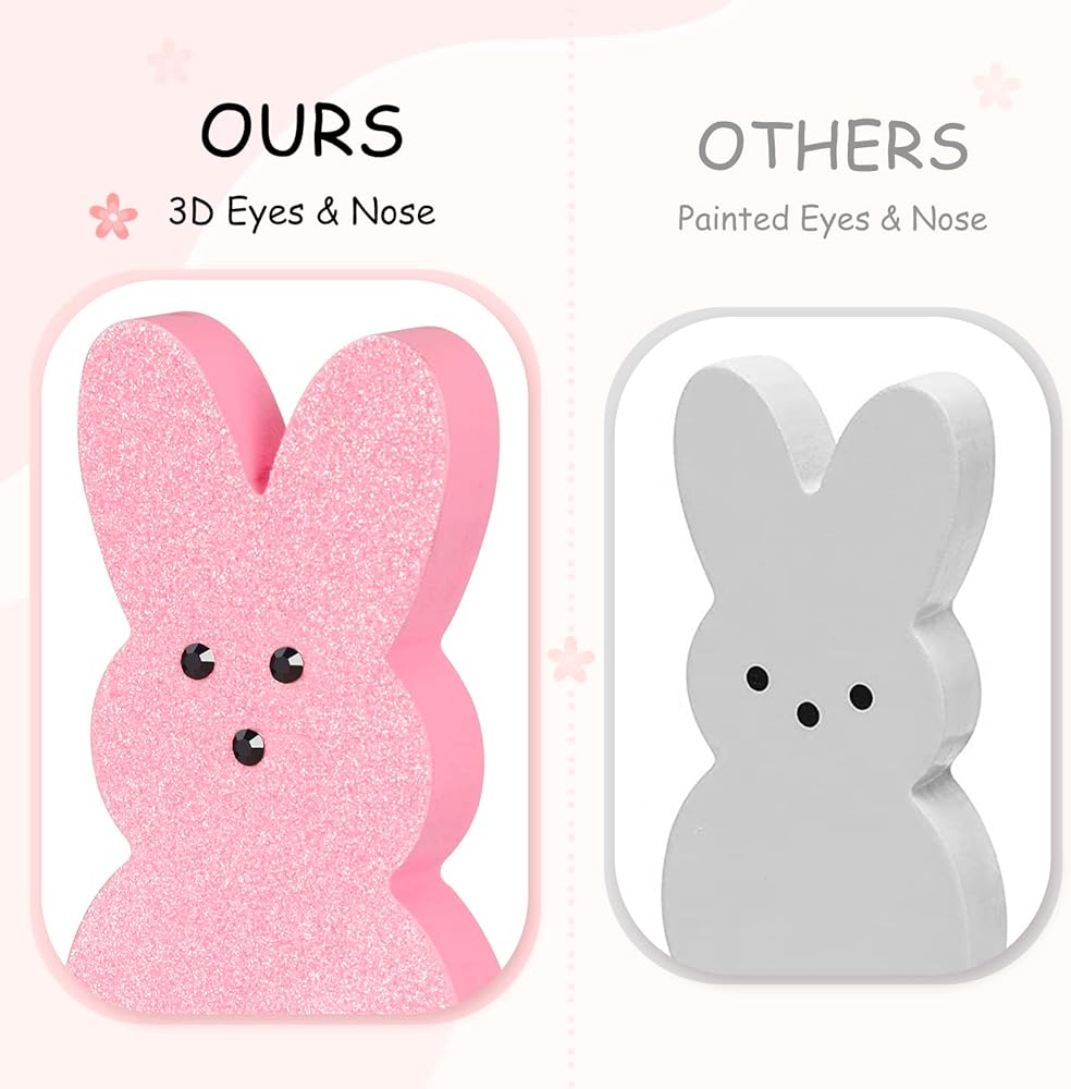 ديكور عيد الفصح، 3 قطع لافتات خشبية لامعة لعيد الفصح للصينية المتدرجة/الرف/ديكورات الطاولة، نمط اللمحات بعيون ثلاثية الأبعاد