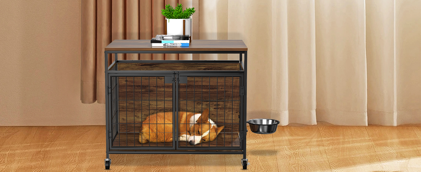 【قوي ومتين】مصنوع من لوح حبيبي وفولاذ عالي الجودة بسمك 15 مم، قفص الكلاب أكثر مقاومة للمضغ وآمن للحيوانات الأليفة. اللوحة العلوية متعددة الوظائف عريضة وقوية ويمكنها حمل ما يصل إلى 200 رطل.