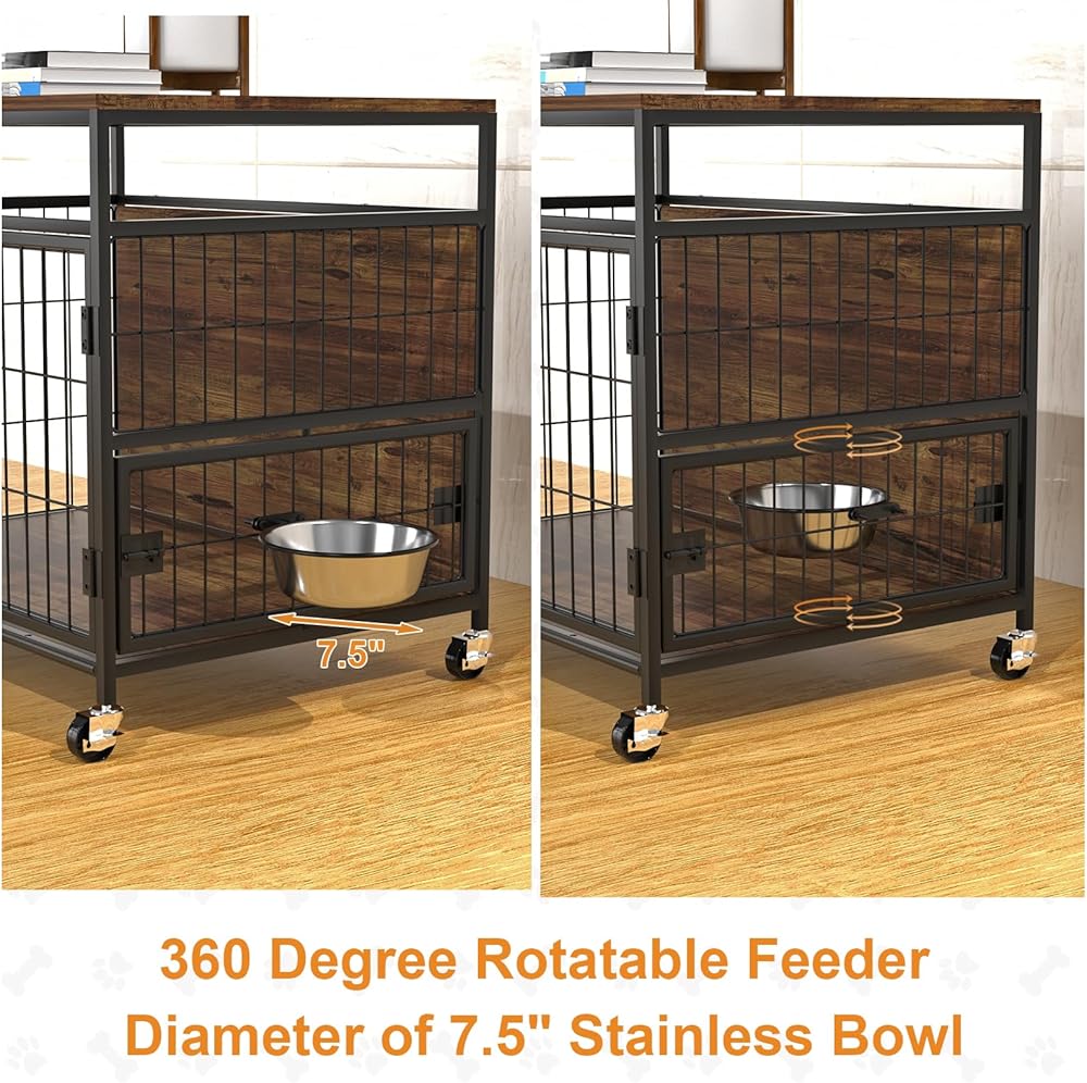 【باب مزدوج ووعاء دوار】يساعد تصميم الباب المزدوج لأثاث قفص الكلاب VyGrow حيوانك الأليف على الدخول والخروج بسهولة من الباب الواحد. يمكن أن تساعدك وحدة التغذية الدوارة 360 درجة على التحكم في تغذية حيوانك الأليف (يأتي مع وعاء واحد من الفولاذ المقاوم للصدأ بقطر 7.5 بوصة). العجلات الدوارة القابلة للقفل لا تساعدك فقط على نقل أثاث القفص إلى أي مكان تريده، ولكن أيضًا يمكن لحيوانك الأليف البقاء أو النوم. ثابت عند قفل العجلات، كما أنها تأتي مع 4 وسادات قدم إضافية قابلة للتعديل للحصول على خيارات مناسبة لك.