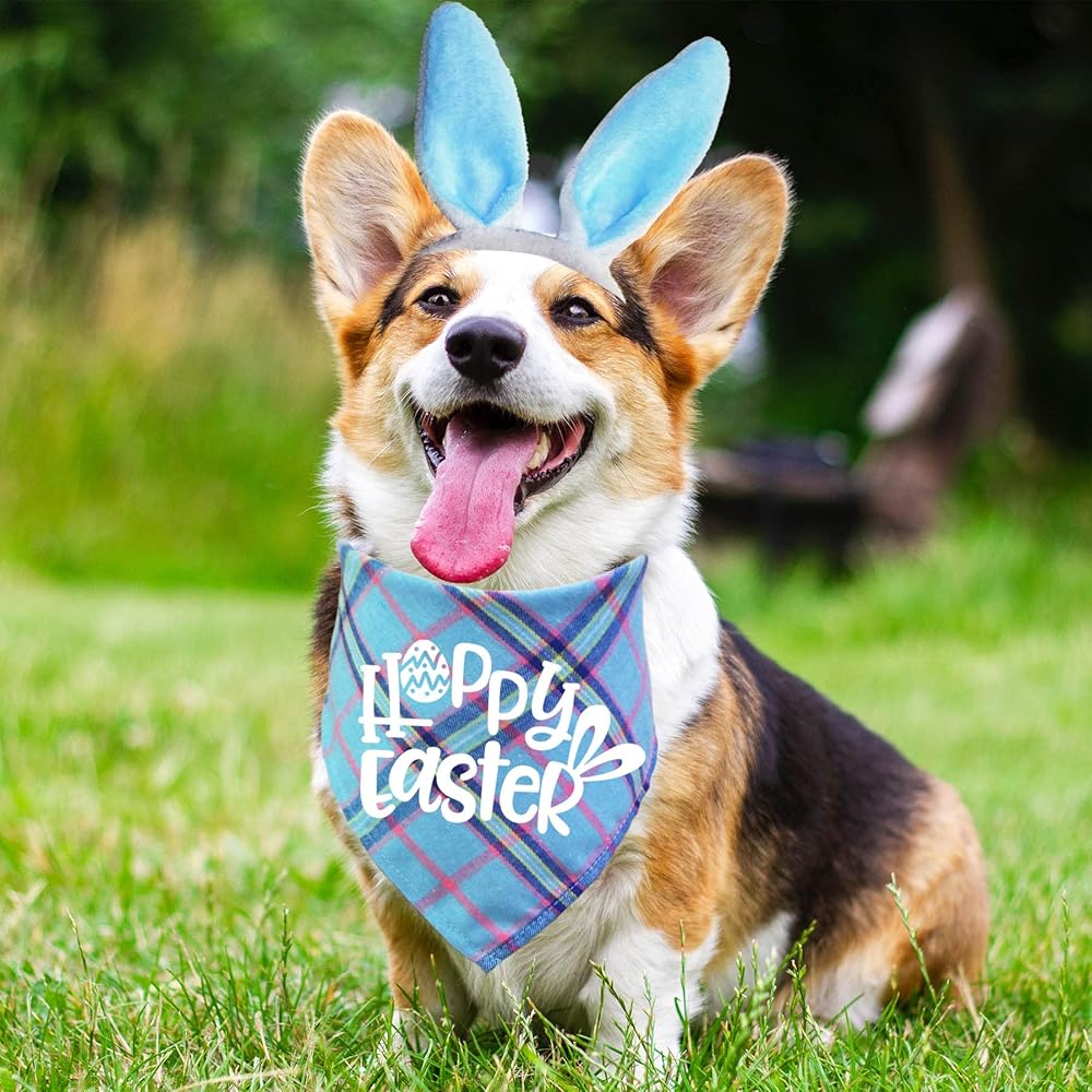 STMK Set of 2 Easter Dog Bandana Bunny Outfits, Easter Bunny Dog Headband Plaid Dog Easter Bandanas Bunny Costumes for Small Medium Large Dogs Easter Costumes