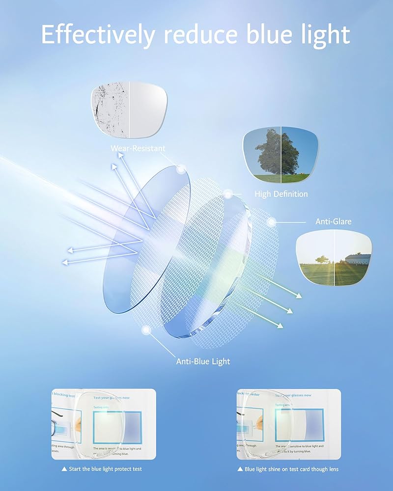 - مضاد للضوء الأزرق - اقطع 90% من الضوء الأزرق. تخفيف تعب العين وجفافها وتساقط الرؤية.