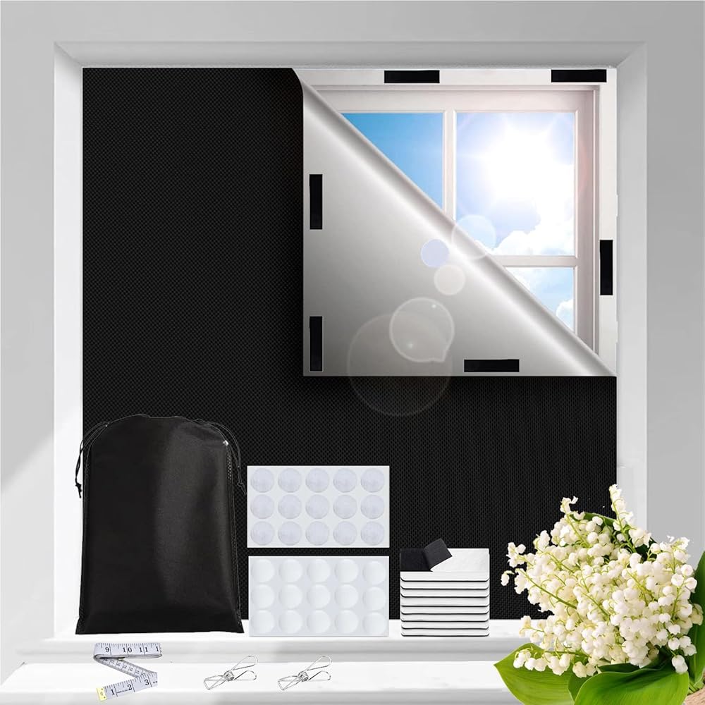 【Quick and Easy to Install】Black out blinds can be simply set up in a few minutes and put up in a few seconds.you can easily cut the shades into the shape you want to perfectly match different shapes of windows. Quick and easy to fit this blackout blinds using velcros in your nursery or bedroom, also can easily be removed. Note that sticking the side of silver on the window.