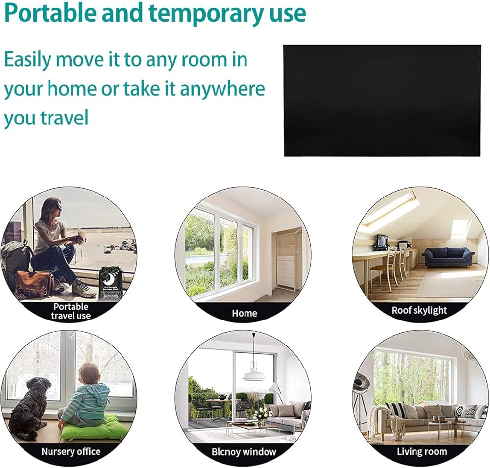 【100% Shading Material】 Portable blackout shade is made of light fabric with excellent heat insulation performance. There is a special silver gray coating on the back of the blackout blind, which can block sunlight and ultraviolet rays 100% and reduce heat.Turns your room pitch black instantly.Creating a cozy pitch-dark sleeping atmosphere for you, Improve your sleep quality.