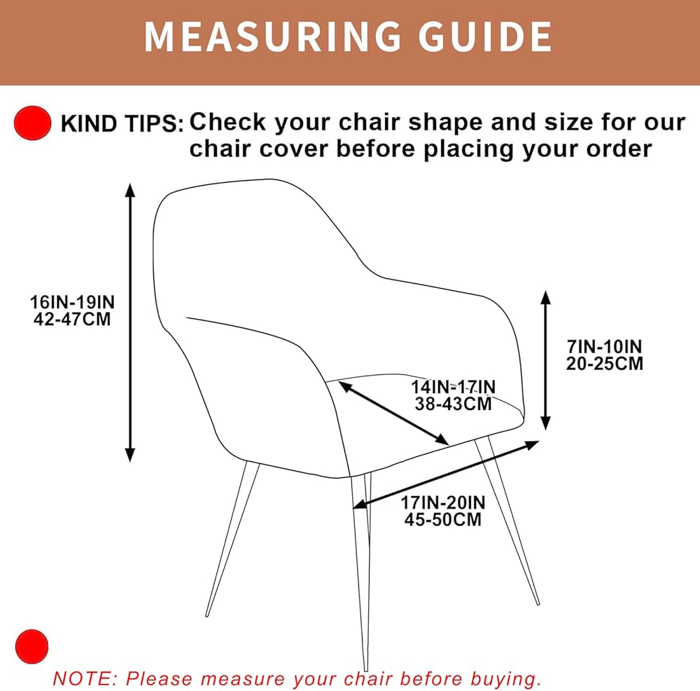 مقاس غطاء الكرسي: أغطية الكراسي الخاصة بنا مثالية لكراسي الطعام ذات الظهر المنحني. ارتفاع الظهر: 16-19 بوصة (42-47 سم)؛ عرض الظهر: 17-20 بوصة (45-50 سم)؛ طول المقعد: 14-17 بوصة (38-43 سم)؛ عمق المقعد: 7-10 بوصات (20-25 سم). أغطيتنا مرنة لتناسب كرسيك، يرجى الرجوع إلى مقاس المنتج قبل الشراء.
