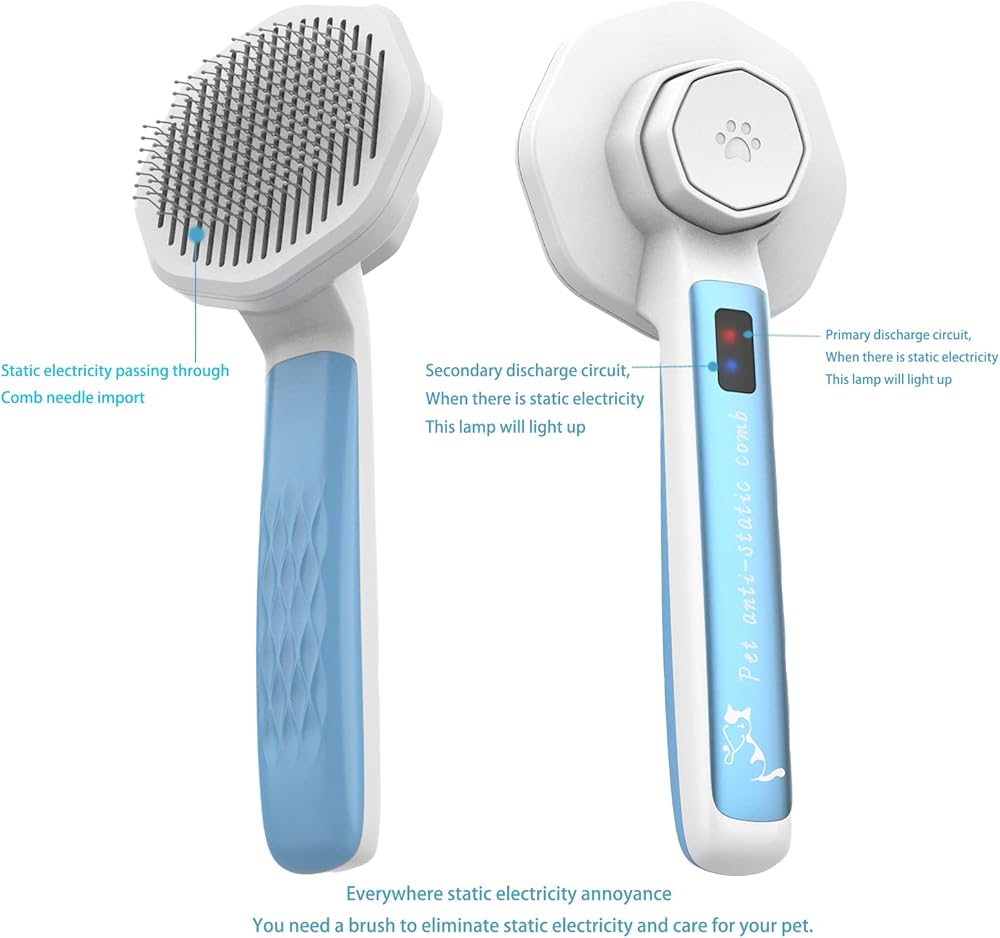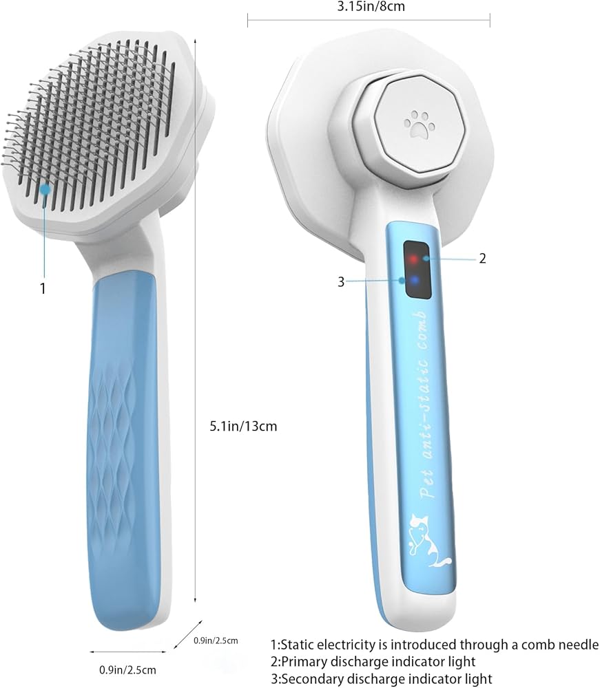【وظيفة إلكتروستاتيكية عملية 】يتم توليد الكهرباء الساكنة في بيئة جافة بشكل خاص. على سبيل المثال، في فصلي الخريف والشتاء، سيكون لدى بعض الأشخاص الذين يحتفظون بحيوانات أليفة ذات شعر طويل شعور واضح بشكل خاص. في الطقس الجاف، سوف ينفجر شعر الحيوانات الأليفة ذات الشعر الطويل. في هذا الوقت، يمكن لهذا المشط المضاد للكهرباء الساكنة أن يزيل الكهرباء الساكنة بشكل فعال، وسيضيء ضوء المؤشر الساكن بسبب الكهرباء الساكنة، ولهذا السبب لا يحتاج هذا الضوء إلى شحن أو بطاريات.