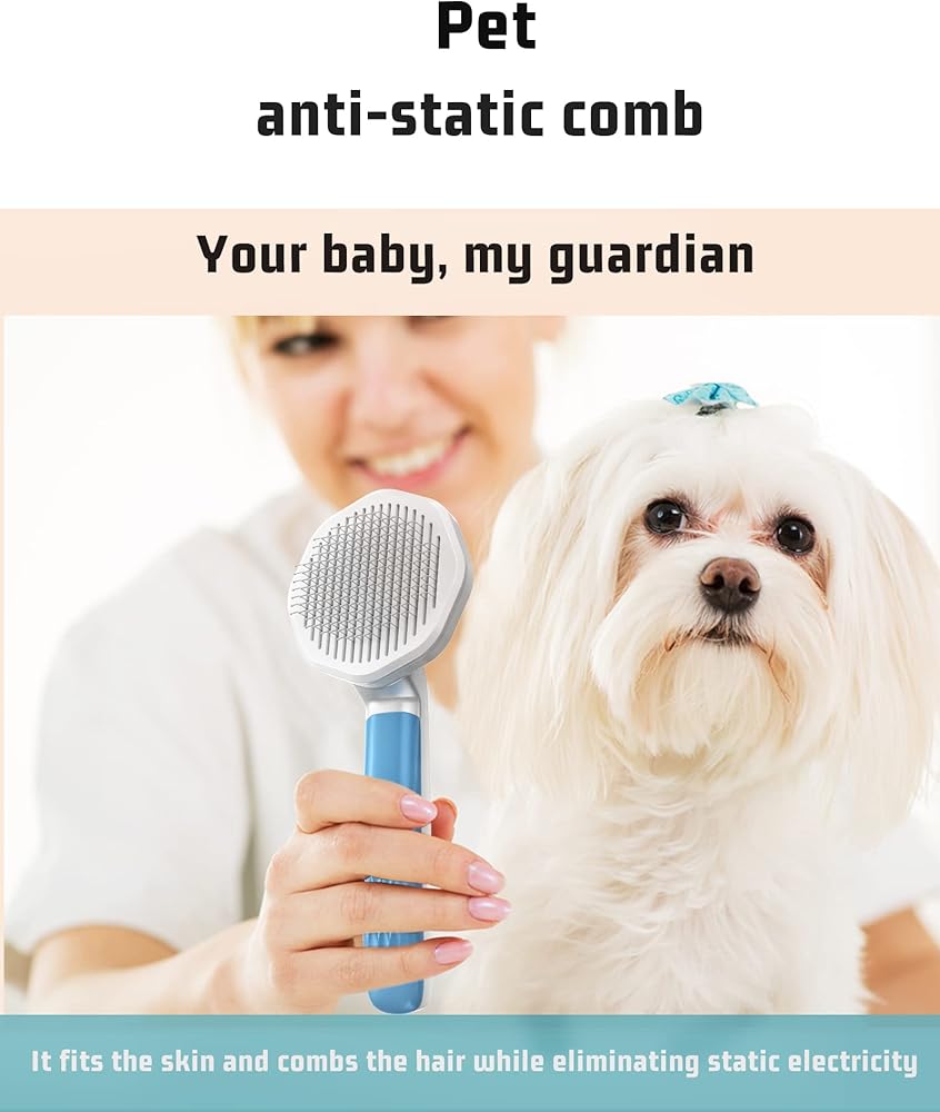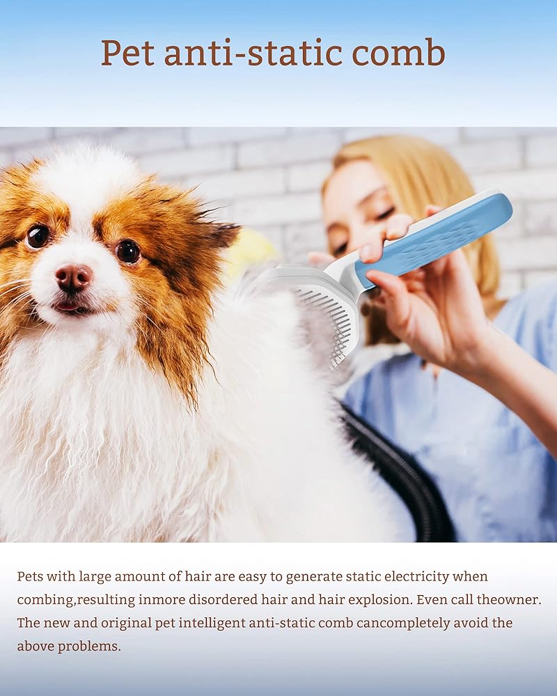 【فرشاة احترافية للعناية بالحيوانات الأليفة خالية من الكهرباء الساكنة】مشط احترافي مضاد للكهرباء الساكنة، وهو فعال للغاية لتجنب ظهور الشعر المستقيم والصدمات الكهربائية عند تمشيط شعر الحيوانات الأليفة. خاصة الحيوانات الأليفة ذات الشعر الطويل. فرشاة تنظيف الكلاب يمكنها إزالة الشعر السائب والتشابك بلطف وفعالية. العقدة والوبر والأوساخ المحاصرة. مناسبة للكلاب/القطط/الأرانب ذات الشعر القصير أو المتوسط أو الطويل أو السميك أو الرقيق أو المجعد، مما يجعل حيواناتك الأليفة لامعة وصحية.