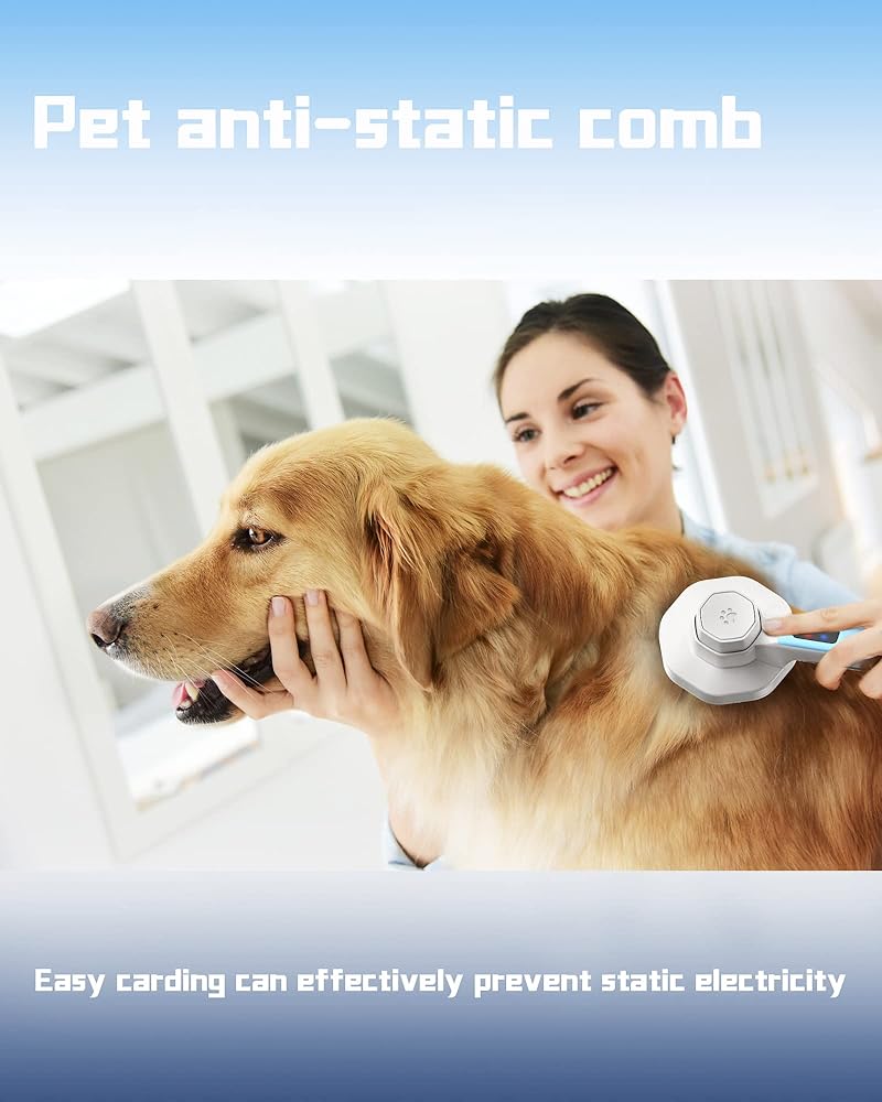 【زر تنظيف بنقرة واحدة】بعد تنظيف حيوانك الأليف بالفرشاة، انقر ببساطة على الزر. سوف يخرج الغالق، ويفصل الشعر الممشط عن الإبرة المعدنية، ثم يمسح الشعر. زر فرشاة الكلب لتساقط الشعر القصير الموجود على المقبض يوفر الوقت والطاقة عند الحلاقة والتنظيف.