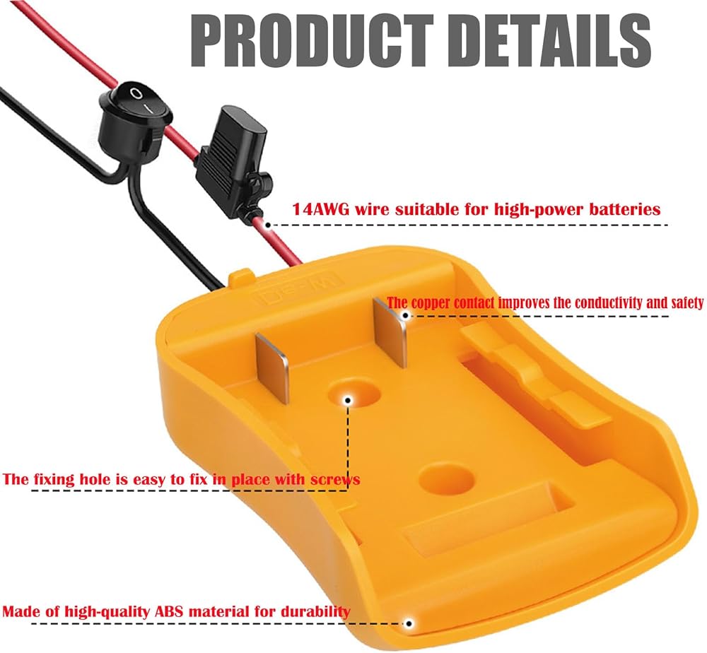 【أمان أفضل】- تم تصميم محول عجلة الطاقة الخاص بنا بميزات أمان محسنة بما في ذلك حامل الصمامات والمفتاح. مصنوعة من مادة ABS المقاومة للحرارة وسلك 12AWG، وهي أكثر ملاءمة لتطبيقات الطاقة العالية، مما يضمن سلامة وتوصيل أفضل.