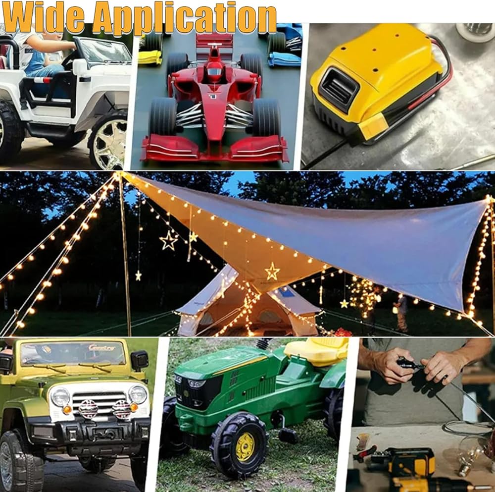 【قابل للتطبيق على نطاق واسع】- استخدم محول البطارية هذا لتشغيل الأجهزة الأخرى أيضًا. الحد الأقصى للتيار المسموح به لأسلاك 12AWG هو 20 أمبير، مما يجعلها آمنة لترقية سيارات ألعاب العجلات الكهربائية وشاحنات RC والروبوتات وأضواء العمل والمزيد. استمتع بمشاريع DIY الخاصة بك بكل سهولة.