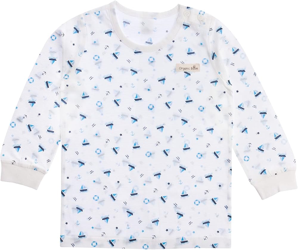 طقم بيجاما للأطفال الرضع مصنوع من القطن العضوي بنسبة 100% خفيف الوزن وأكمام طويلة من قماش الجاكار لربيع وصيف