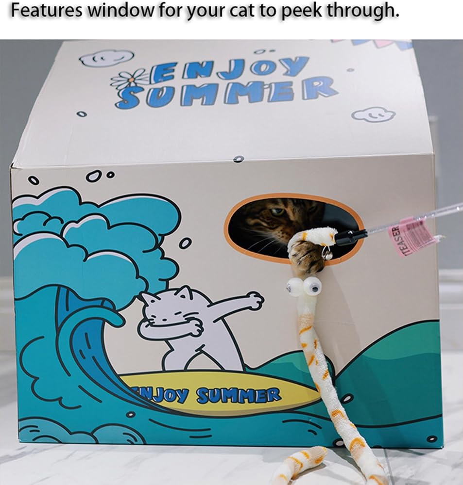 اللعب في الهواء الطلق: بيت القطط من الورق المقوى يجعل من السهل حمل قطتك للعب في الهواء الطلق والراحة في بيت القطط.