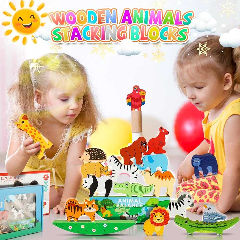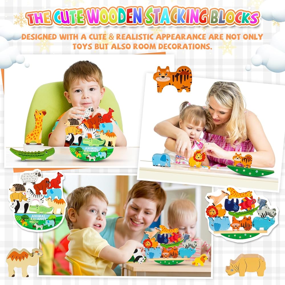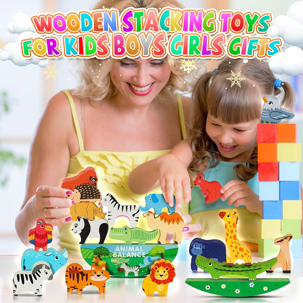 💖【خيار هدية مذهل】: مكعبات التراص الخشبية على شكل حيوانات هي لعبة مونتيسوري ممتعة للأطفال من سن 3 إلى 6 سنوات، وتأتي في صندوق هدايا جميل، مثالية لتقديمها في مناسبات مختلفة مثل أعياد الميلاد والهالوين والكريسماس وما إلى ذلك. هدية للأطفال، استمتع مع أطفالك.
