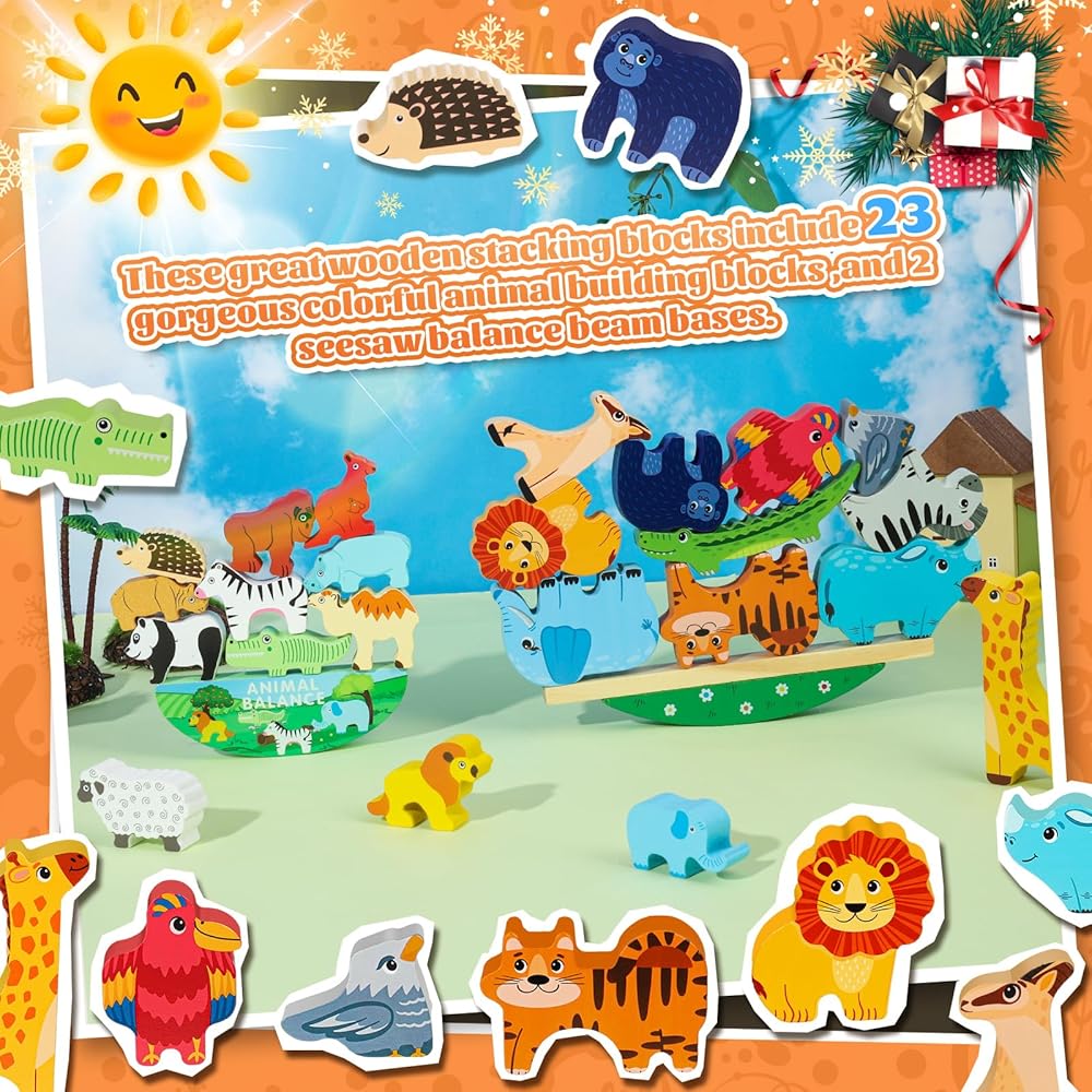 25 قطعة من مكعبات الحيوانات الخشبية من يو سبيدي، ألعاب التراص للأطفال الصغار، مكعبات بناء حديقة الحيوان اللطيفة، مجموعة ألعاب التوازن من مونتيسوري، ألعاب تعليمية لمرحلة ما قبل المدرسة من أجل 3-6 هدايا للأولاد والبنات