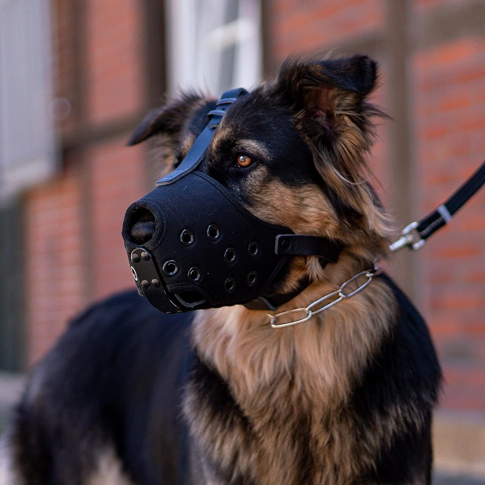 The innovative muzzle design promises a comfortable feeling when worn. The muzzle is made of good quality Cordura. This is a very light, but still extremely durable material. It handles all elements and is so comfortable your dog will grow to love it! In addition, the muzzle is breathable even under adverse conditions and is designed to last for years with easy care instructions. Your dog will be much safer with this muzzle. SOME IMPORTANT SPECIFICATIONS & FEATURES: Light Material Durable Cordura Perfect Air Circulation Easy care construction Saliva and drinking water residues can easily drain Good Quality Cliclock closure for easy opening and closing PREVENT DOG BITES: The dog muzzle is perfect for walking, training, vet, grooming and etc. The muzzle is easy to clean and dries quickly while maintaining its shape and appearance. Train a dog to accept a muzzle. The muzzle is the type of accessory that is only meant to be used for short periods of time, and only when your dog is supervised. Muzzles are used to prevent potentially dangerous behaviors that could hurt your dog or those around them. Get your dog used to this basket muzzle, adjust the straps, and then fasten the locks, your dog is securely muzzled and ready to go!
