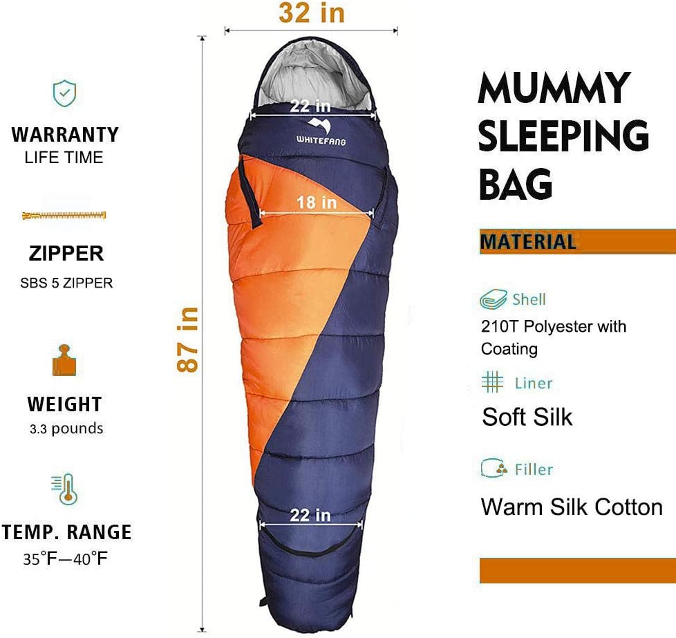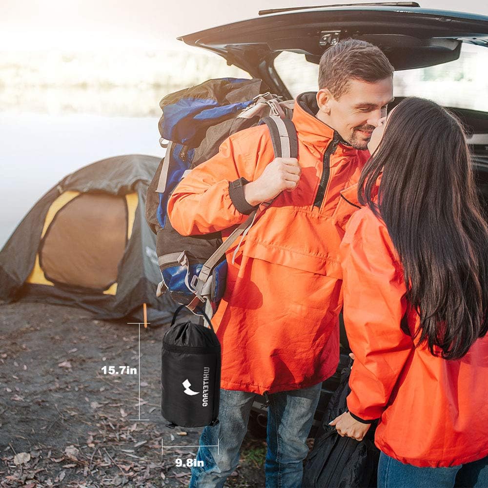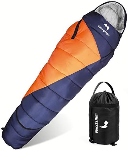 【Lightweight and Portable】– The mummy sleeping bag is designed that weight only 3.3 pounds. And each sleeping bag comes with a portable compression bag, so you can easily carry the sleeping bag in a compression bag and carry it with you. It's really perfect for Camping, Hiking, Travel, and Outdoor Activities. The sleeping bag also has a drawstring hood and a magic patch that keeps the warm air in and the cold air out and away from your head and neck.
