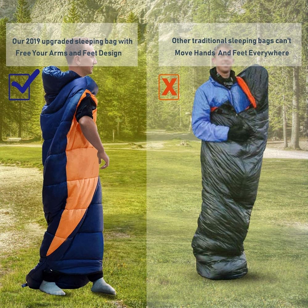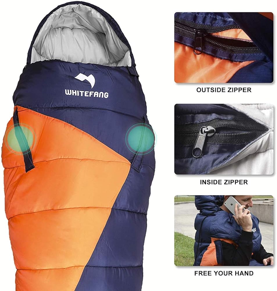 【Free Your Arms and Feet Design】– The double slider zipper is designed for airing your arms and feet. This makes it easy to do whatever you want and does not need to come out of the sleeping bag. The SBS double slider zipper has been tested for 100,000 times of stretch quality test. The zipper designed can better prevent the loss of warmth and the entry of cold air. It is also more convenient to operate from inside the sleeping bag.