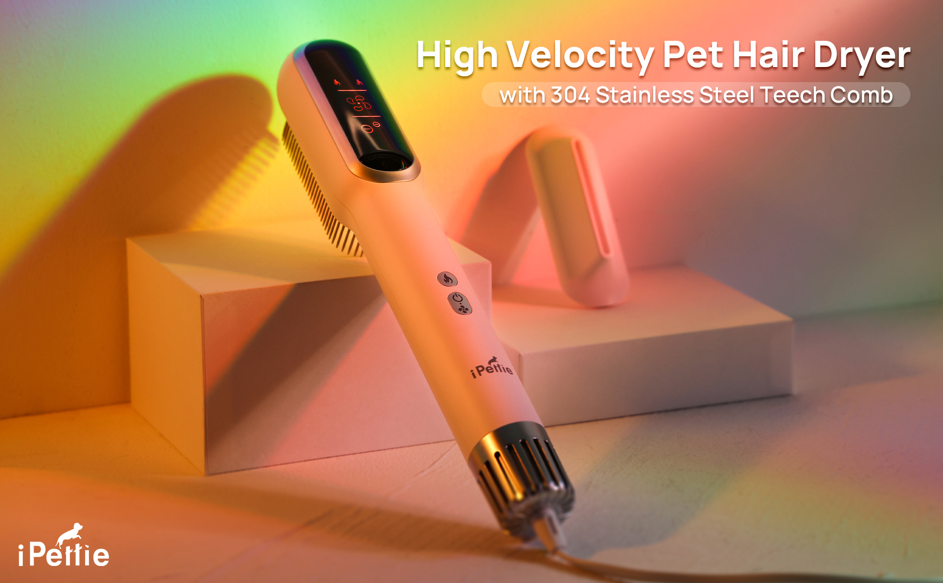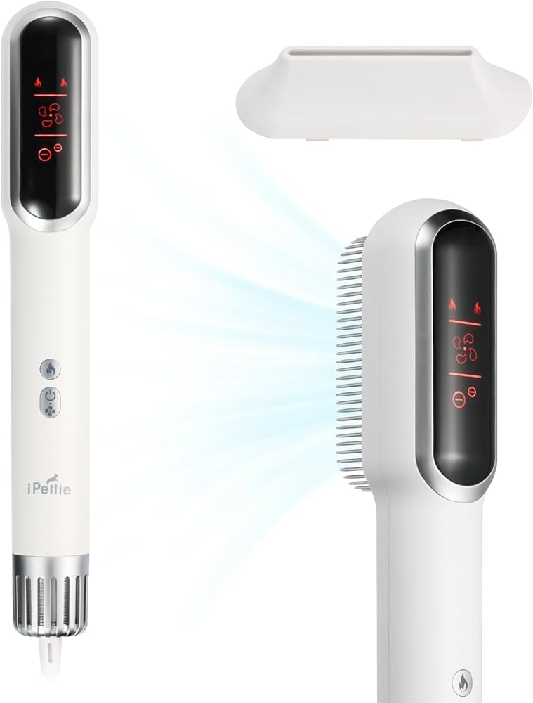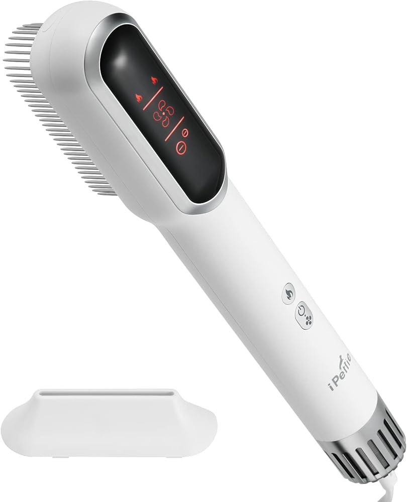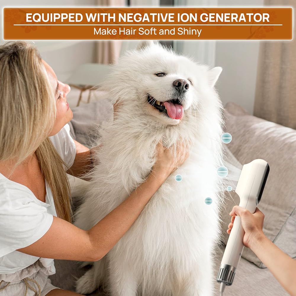 مجفف شعر الحيوانات الأليفة المحمول عالي السرعة من iPettie مع مشط ومكثف من الفولاذ المقاوم للصدأ، 3 إعدادات للحرارة و3 إعدادات لتدفق الهواء، مجفف شعر أيوني أقل ضوضاء للكلاب، مجفف شعر للكلاب، مجفف للقطط للسفر المنزلي